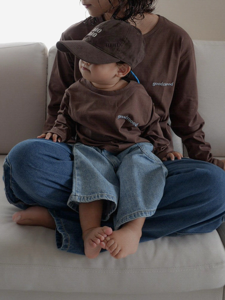 夏に大人気だった「good mood」シリーズが、25AWではロンTとして登場。シンプルなロゴ刺繍が胸元に入った上品なデザインで、カジュアルにもクラシカルにも着こなせる万能アイテムです。ベビーからジュニア、さらに大人サイズまで幅広く展開しているため、リンクコーデにもぴったり。秋冬シーズンのデイリーウェアとしても、写真映えする特別なシーンにもおすすめです。