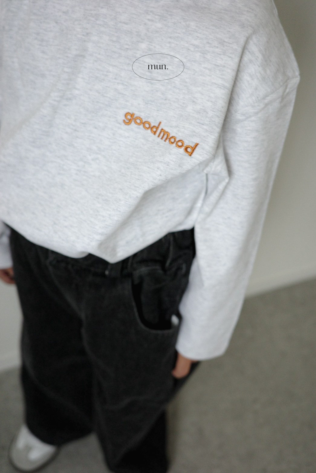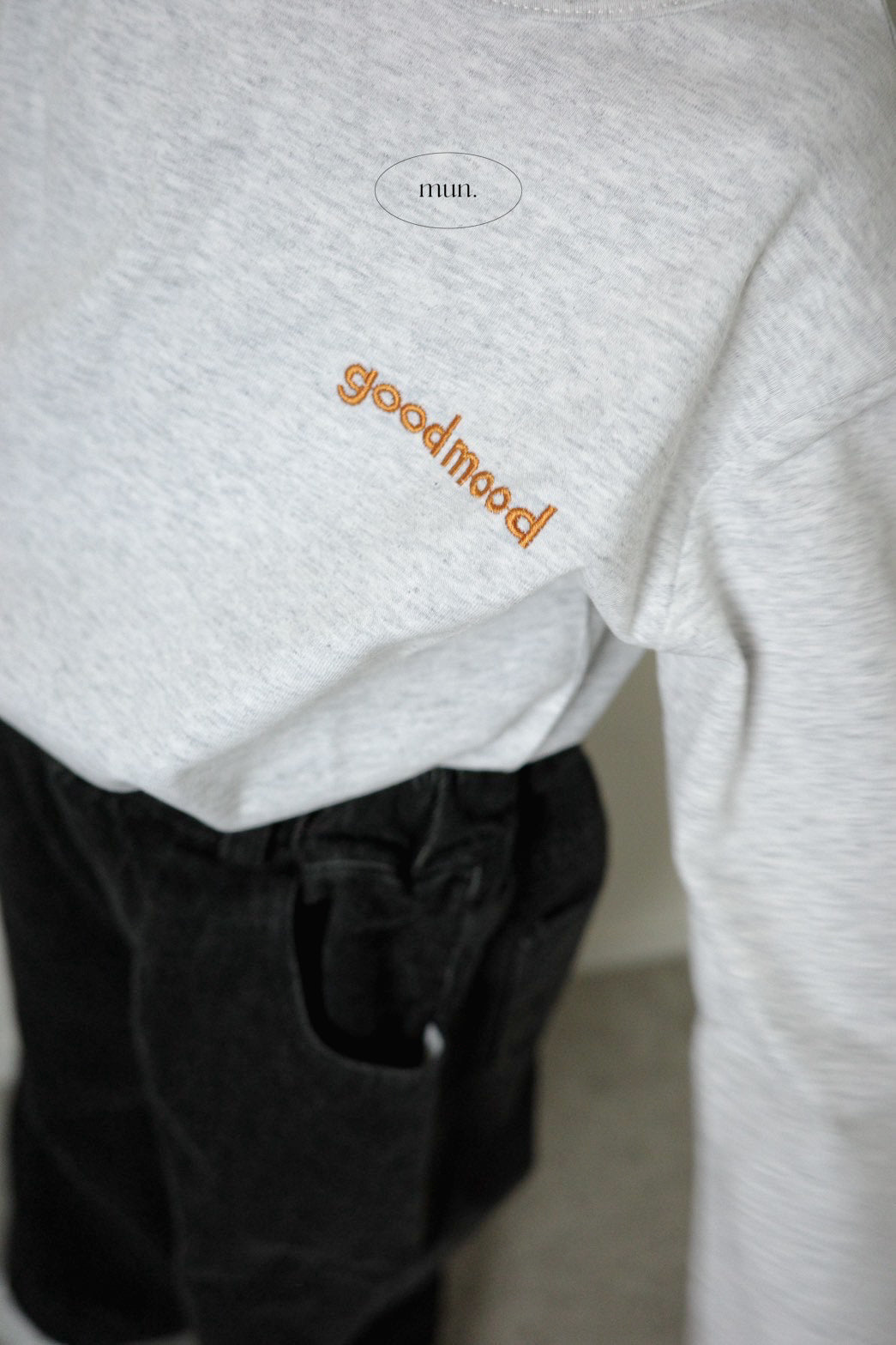 • シンプルな「good mood」ロゴ刺繍入り