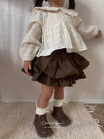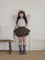 ふんわりとしたボリューム感が可愛い、インナーパンツ付きのバルーンスカート。年中使える素材。