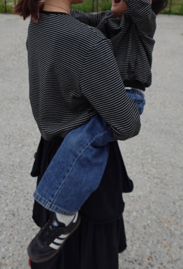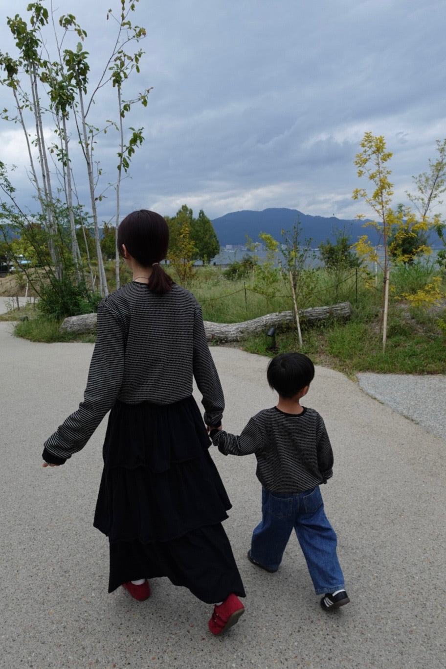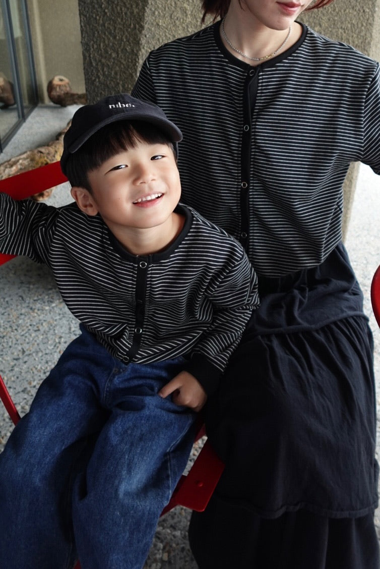 シンプルなボーダーデザインで、どんなコーデにも合わせやすいボーダーカーディガン。やわらかな素材感で季節の変わり目にぴったり、羽織るだけで大人も子どももおしゃれに仕上がります。サイズはベビーからジュニア、大人まで幅広く展開しているため、兄弟姉妹リンクやファミリーコーデにおすすめ。秋口や春先のアウターとしても、冬の重ね着にも使える万能アイテムです。