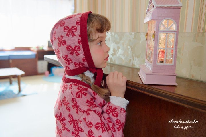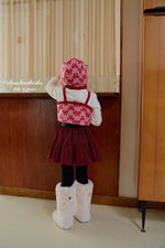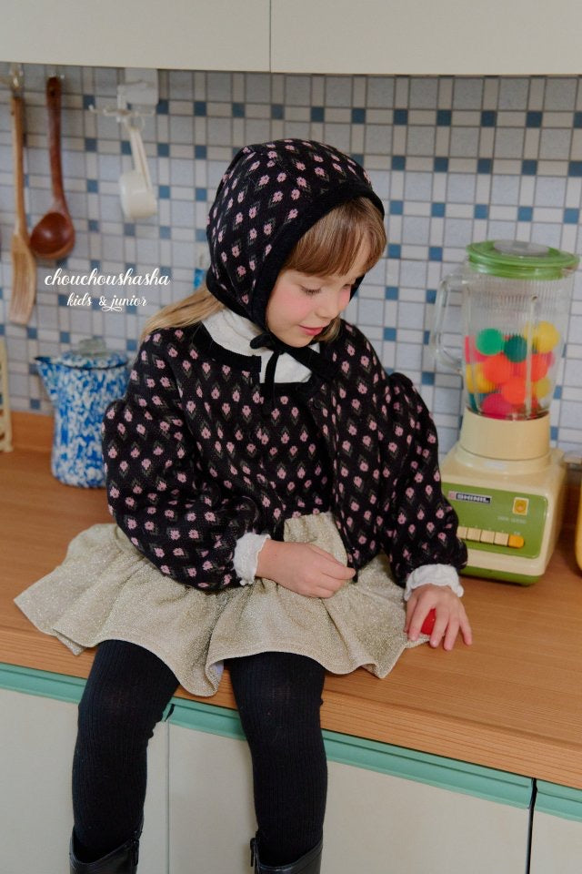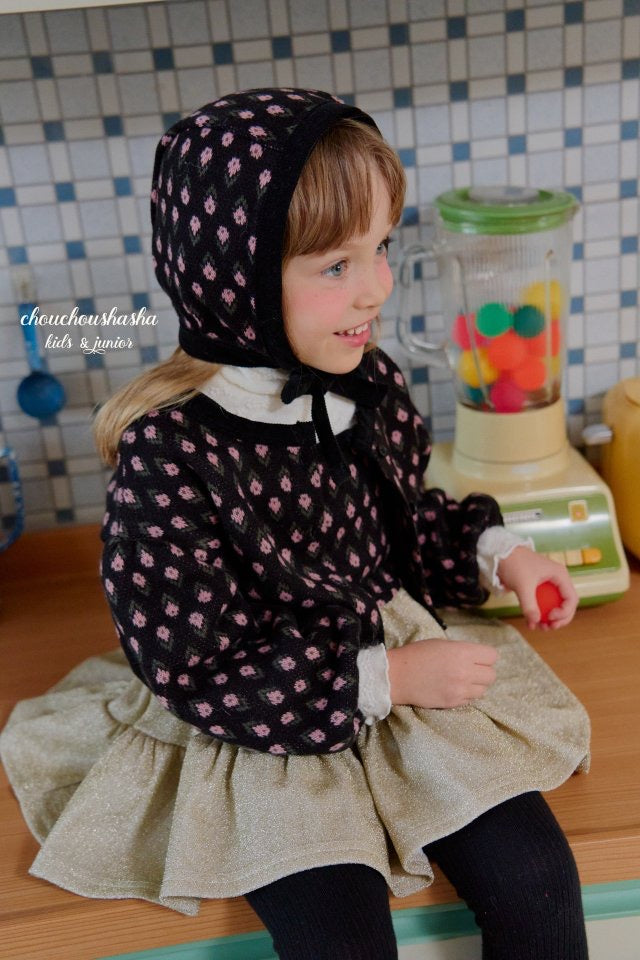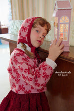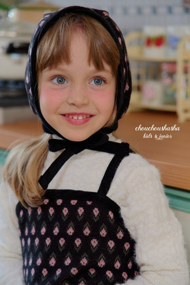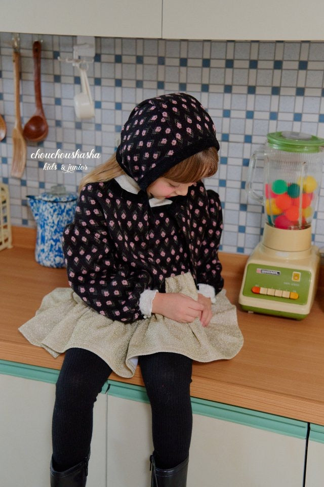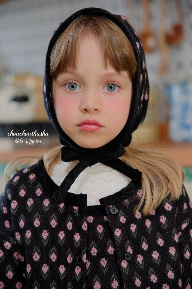 ジャガードニット素材のリリーセットとお揃いの帽子。起毛感がありあたたかいです。