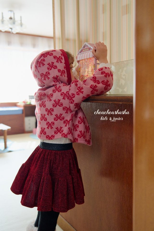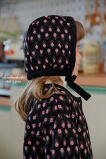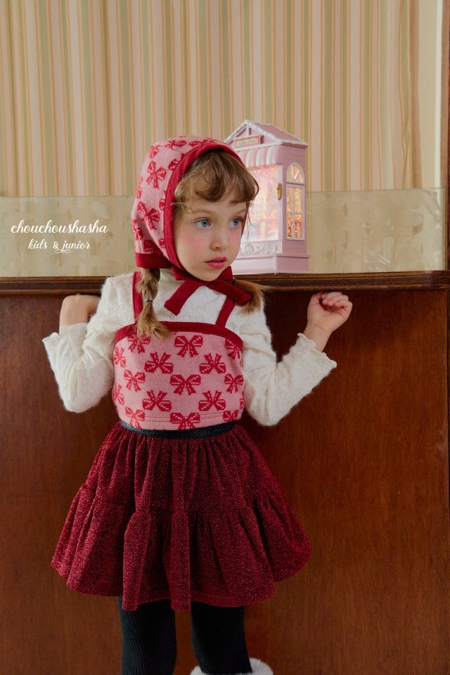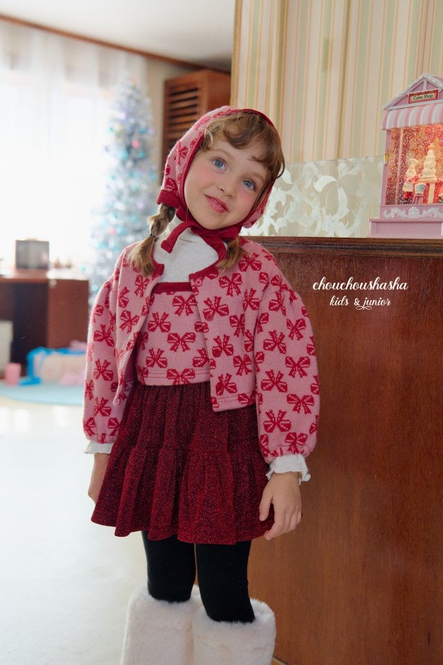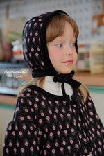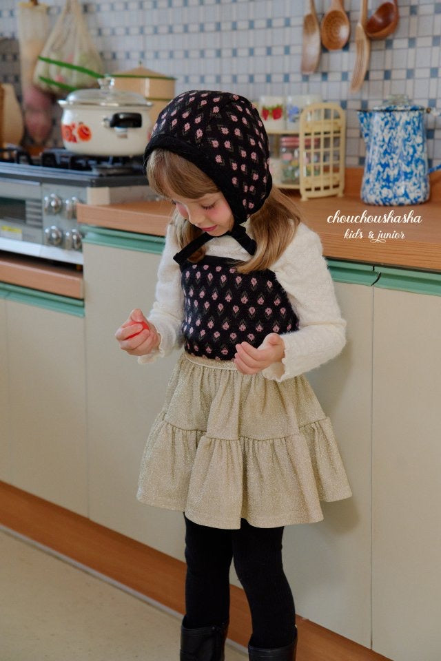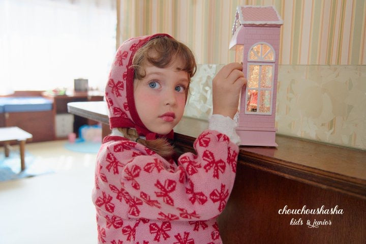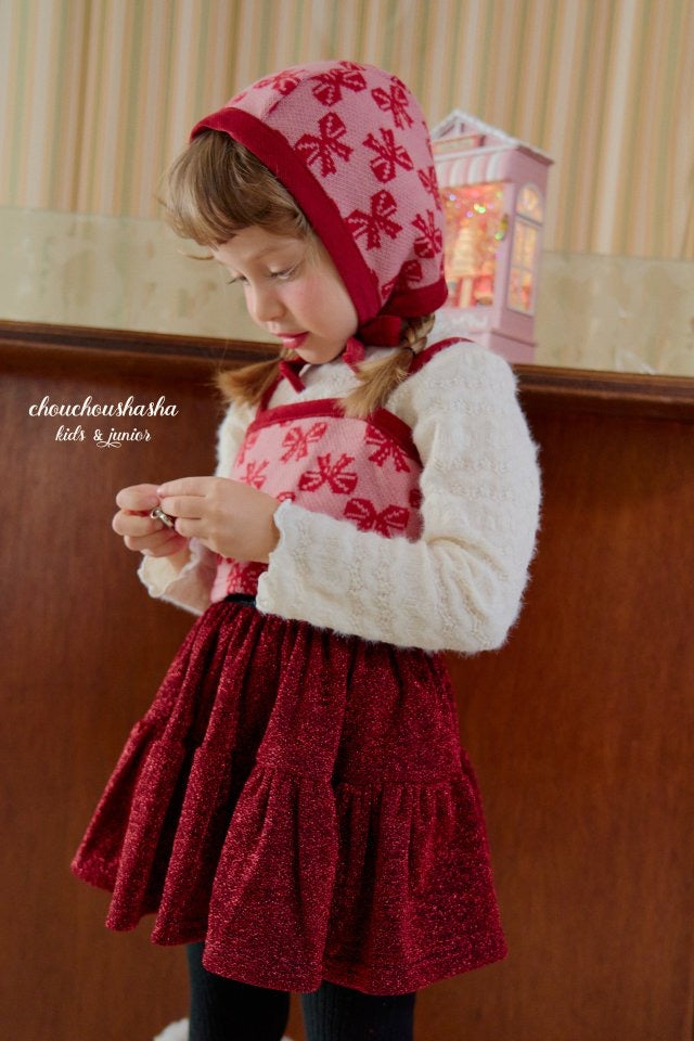 ジャガードニット素材のリリーセットとお揃いの帽子。起毛感がありあたたかいです。