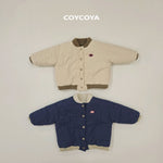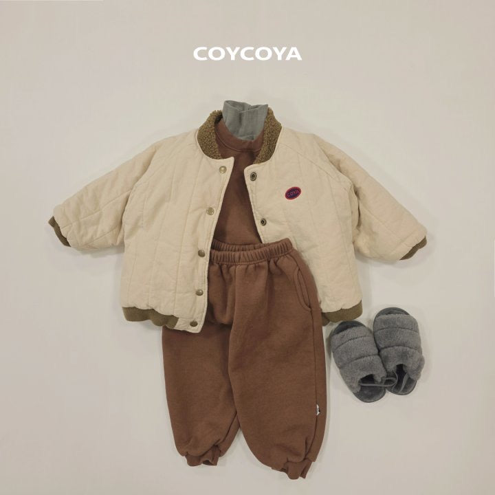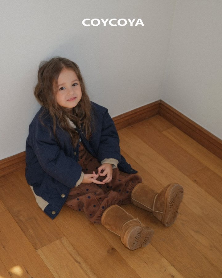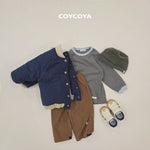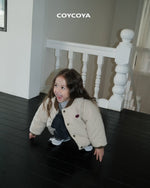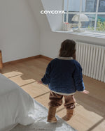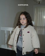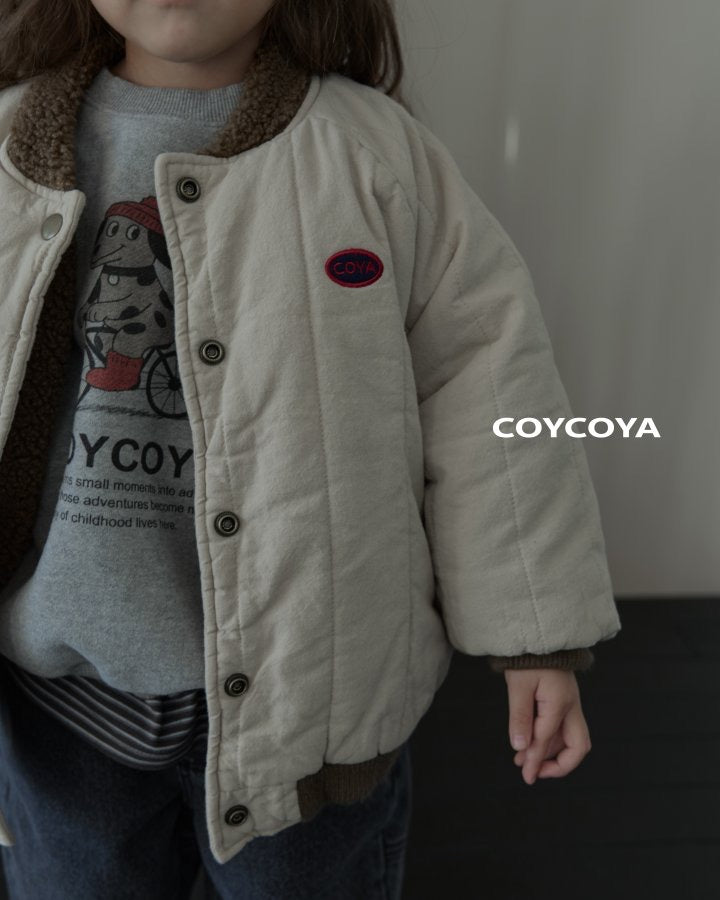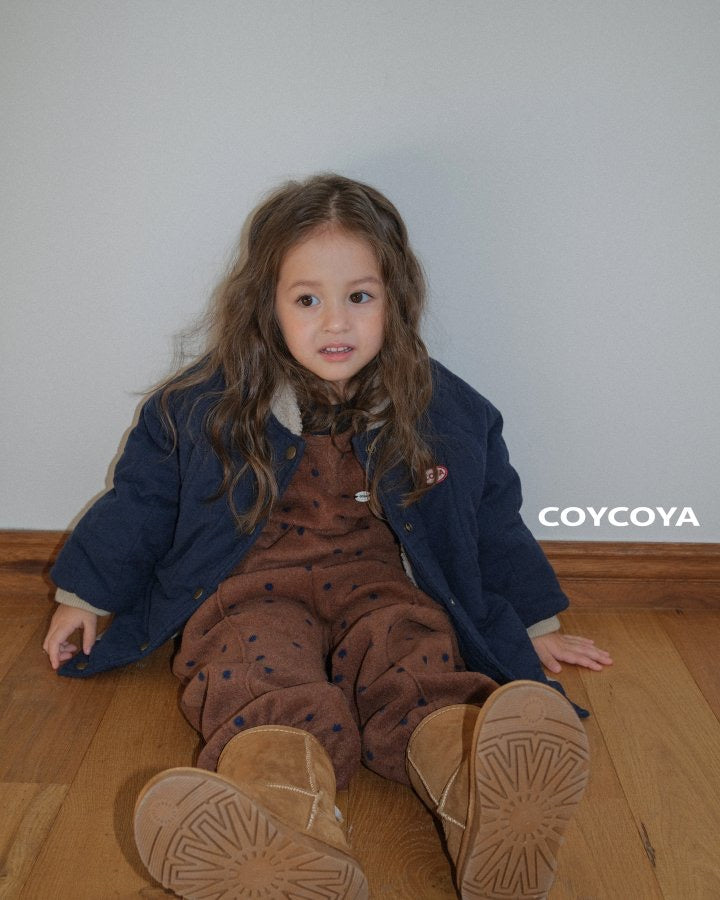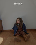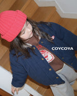 見るだけでほっこりとした温かみが伝わる冬用ジャケットです。表地は3オンスのキルティングでしっかりと形を保ちつつ、コットン起毛素材で手に触れた瞬間から柔らかく温もりを感じられます。裏地はもこもこのボア素材で、着た瞬間から子どもを優しく包み込みます。全体的に丸みを帯びたシルエットが魅力で、左胸には可愛いコヤ刺繍ポイント入り。軽やかでルーズなシルエットなので、厚手のインナーと合わせても動きやすく、冬のお出かけ用にぴったりの一着です。洗濯後も変形しにくく、より柔らかく仕上げられた安心の1着です。