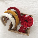 冬らしいもこもこニット素材のヘアバンド。コーディネートのアクセントにぴったり。