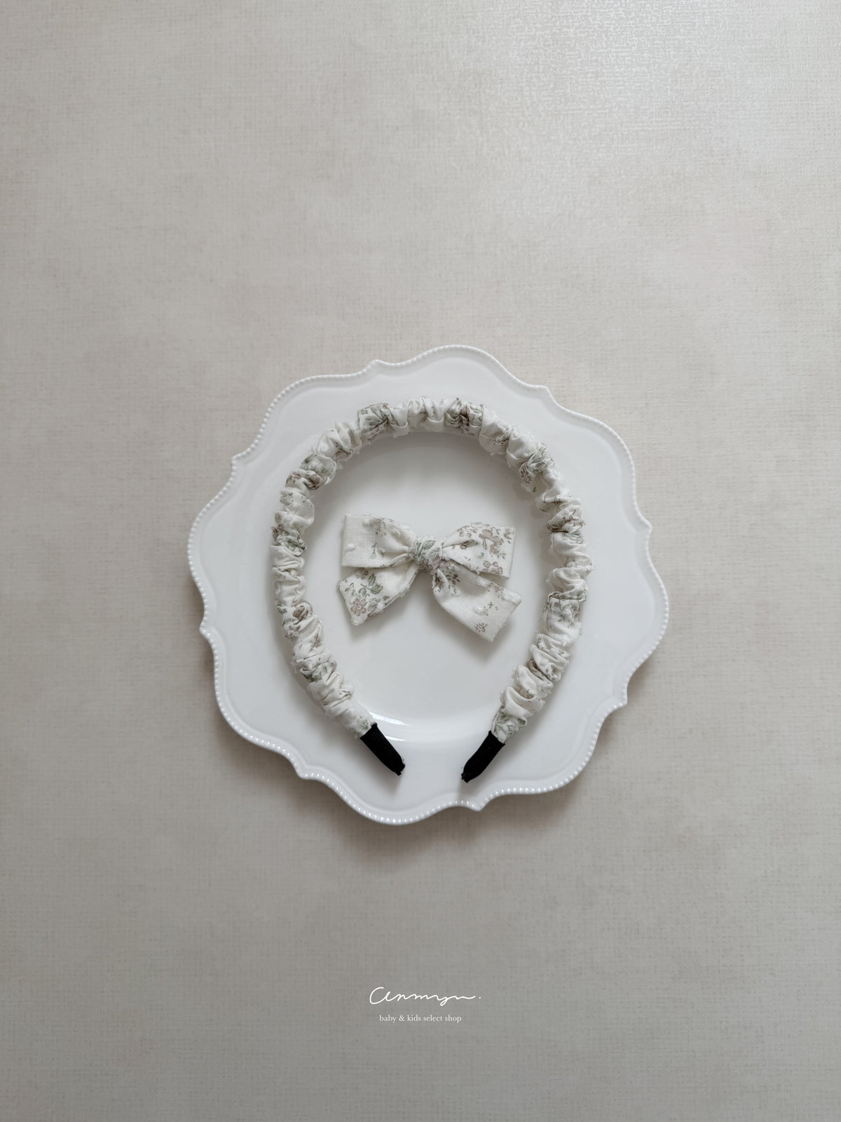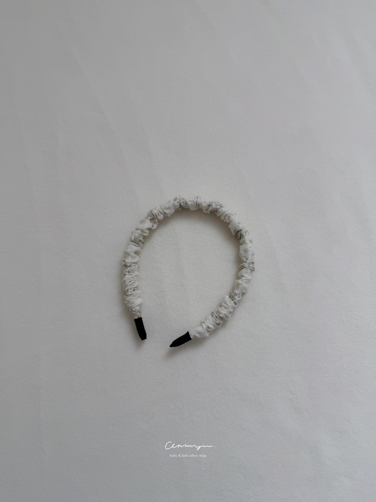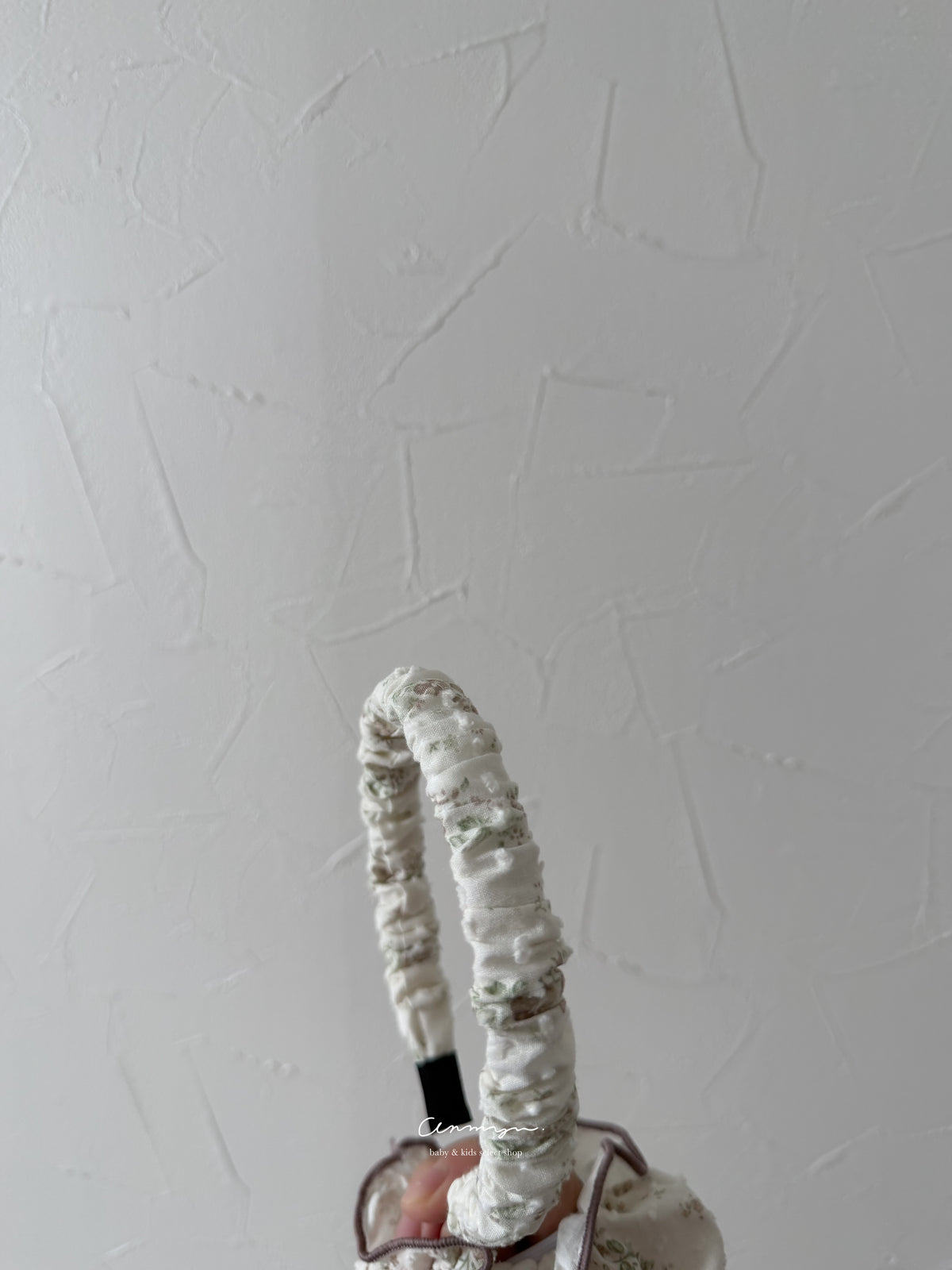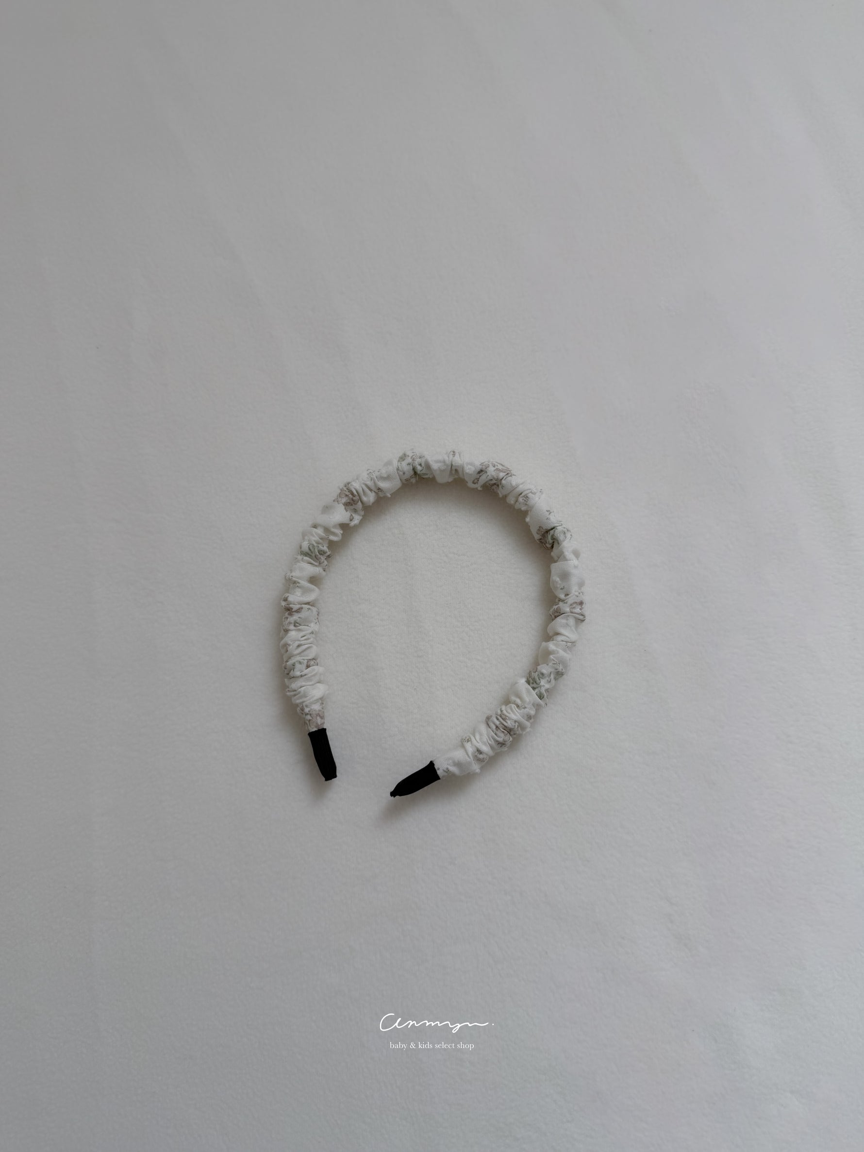 milu × anmyu コラボの「Vello Hairband」は、vello ruffle rompersと同生地で仕立てた特別なヘアアクセ。淡い小花柄がフェミニンに寄り添い、普段使いから撮影コーデまで上品に仕上がります。柔らかい生地で締め付け感が少なく、ベビーにも安心。ロンパースやドール服とのリンクコーデも楽しめる、特別感ある限定ヘアバンドです。