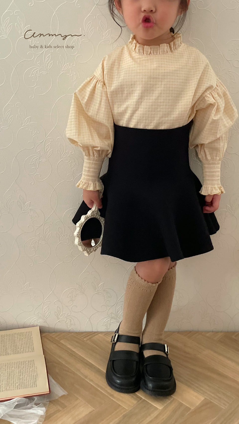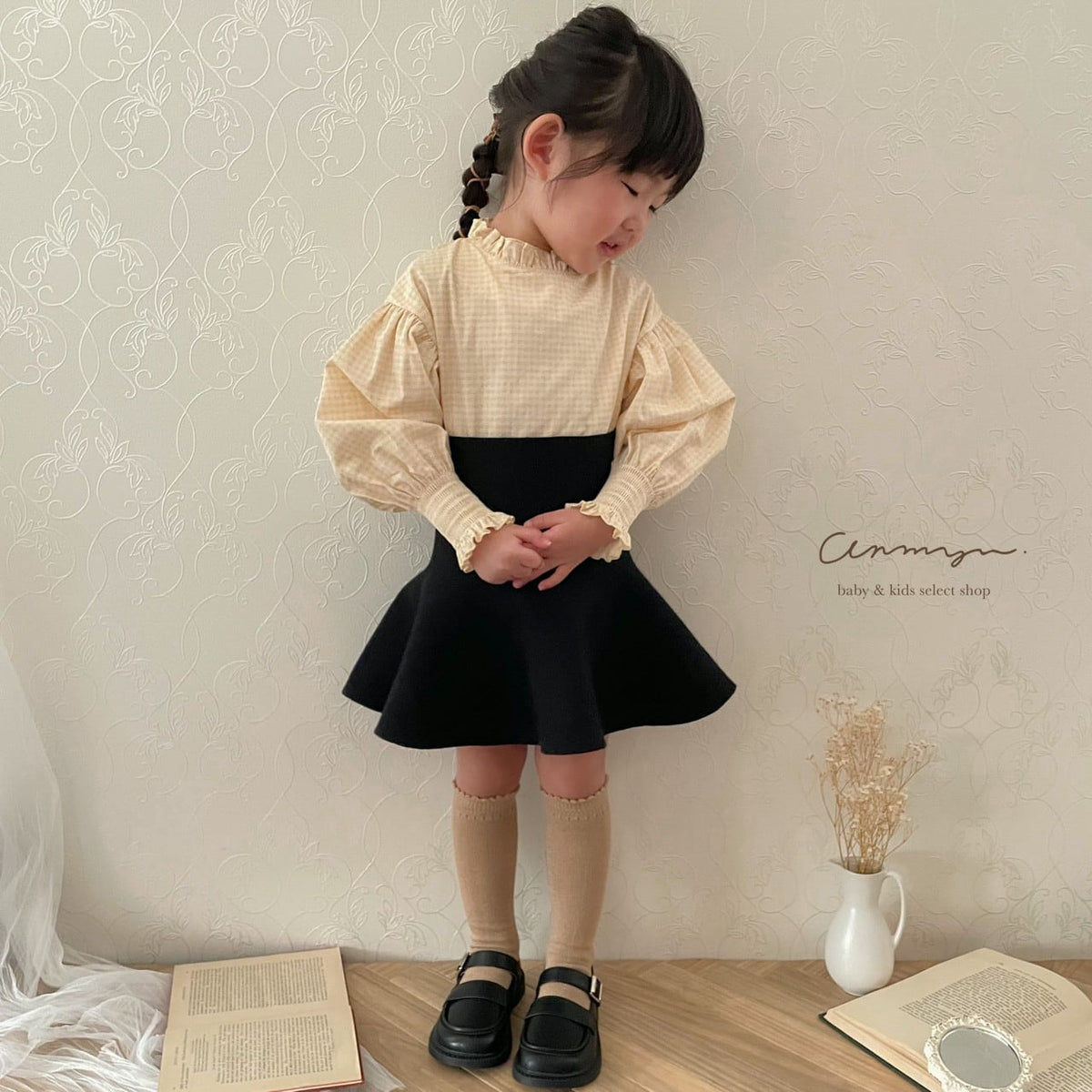 anmyuオリジナルの新作ブラウスに合わせた、