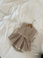 愛らしいデザインのレースベスト。