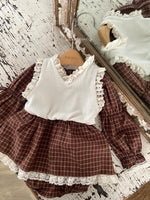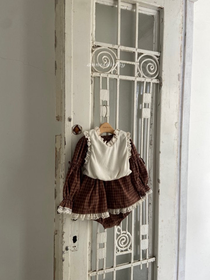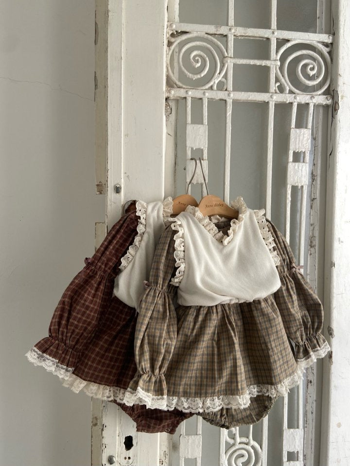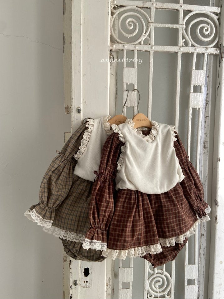 スカートの裾にたっぷり施されたレースが女性らしさを演出。