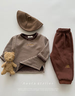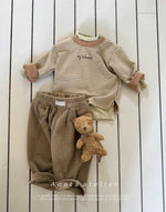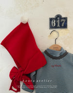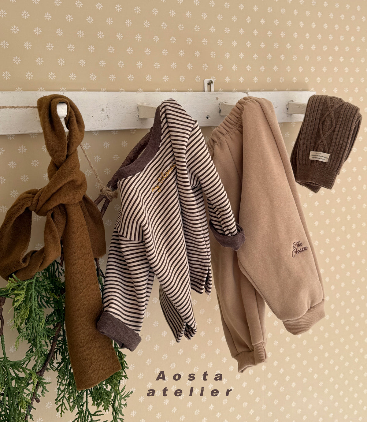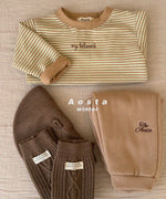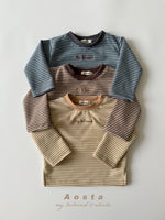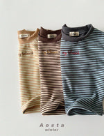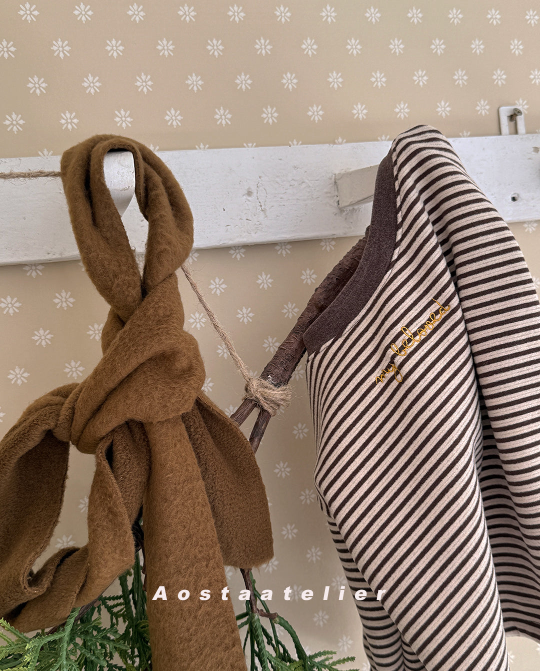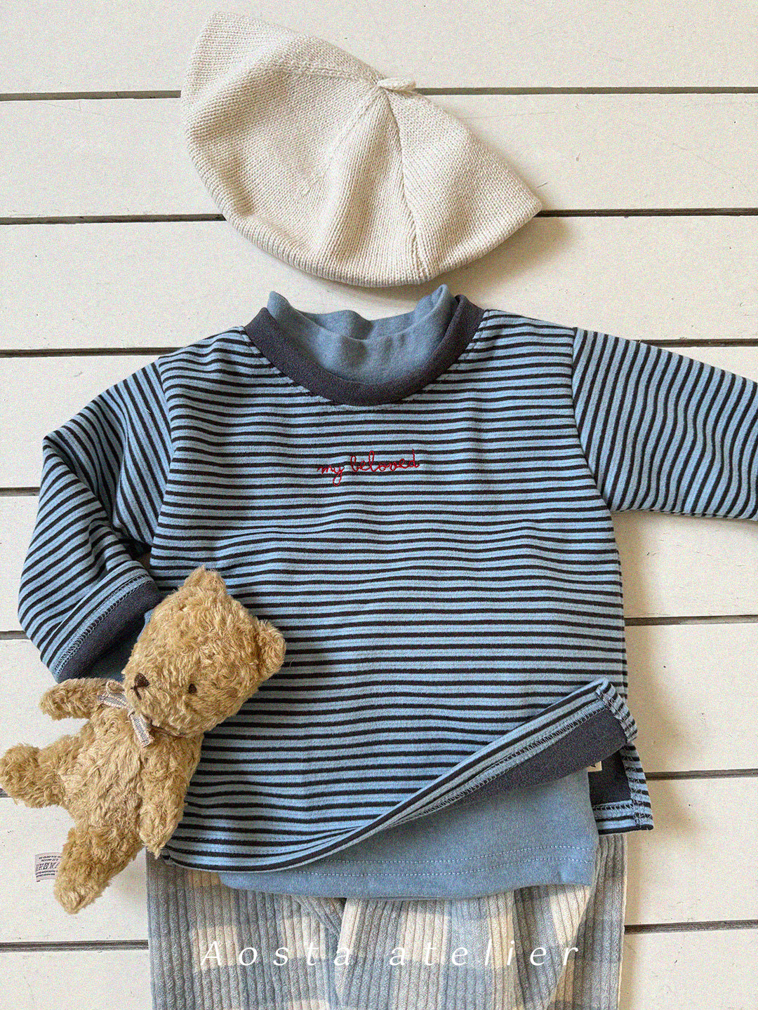 Aosta > スリットと刺繍のディテールが特徴のボーダーTシャツ「Mybee T」です。裏地とネックラインはソリッドカラーで上品に仕上げています。柔らかく暖かい肌触りで、デイリーにぴったりなアイテムです。