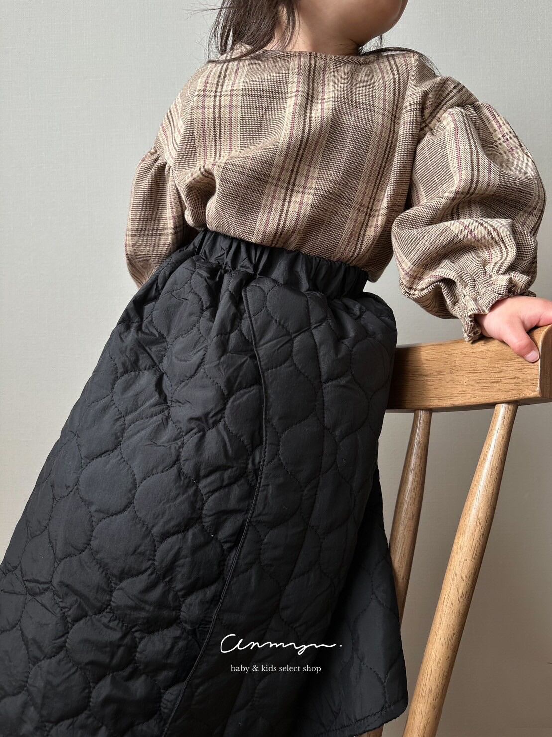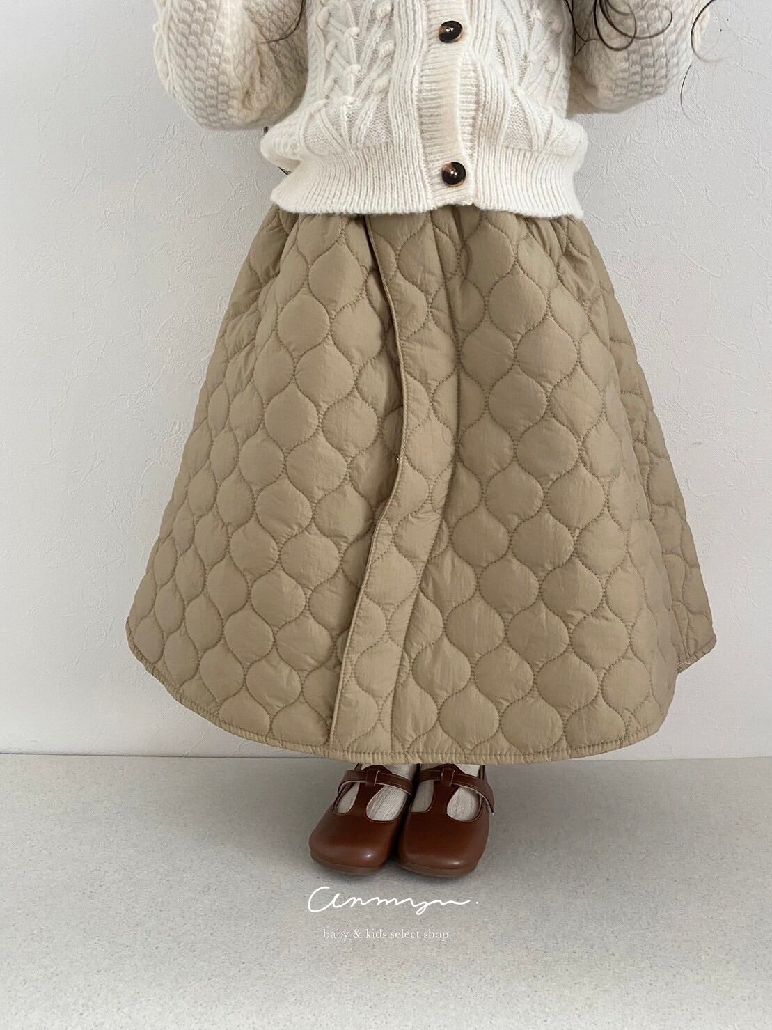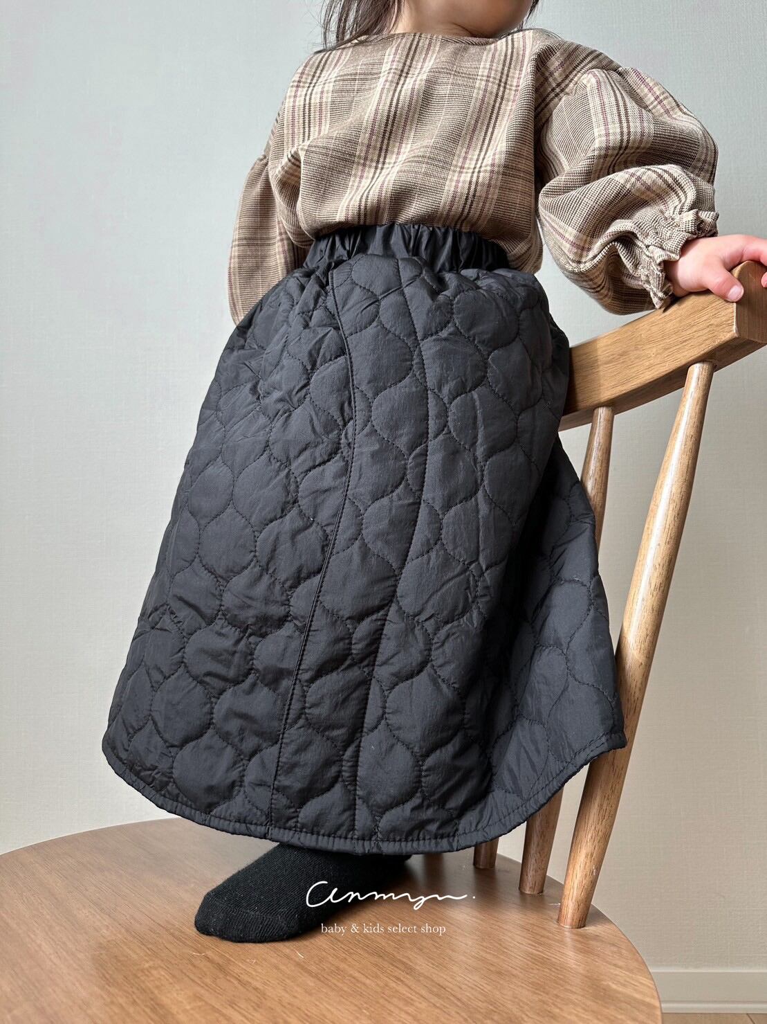 ふんわりとしたキルティング素材が冬らしさ満点のスカート。
