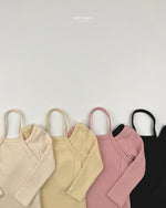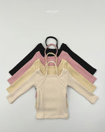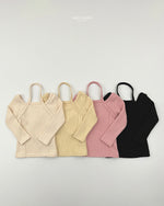 ホルターデザインが可愛いニット風起毛Tシャツ。 首元がポイントになって女の子らしい印象に。