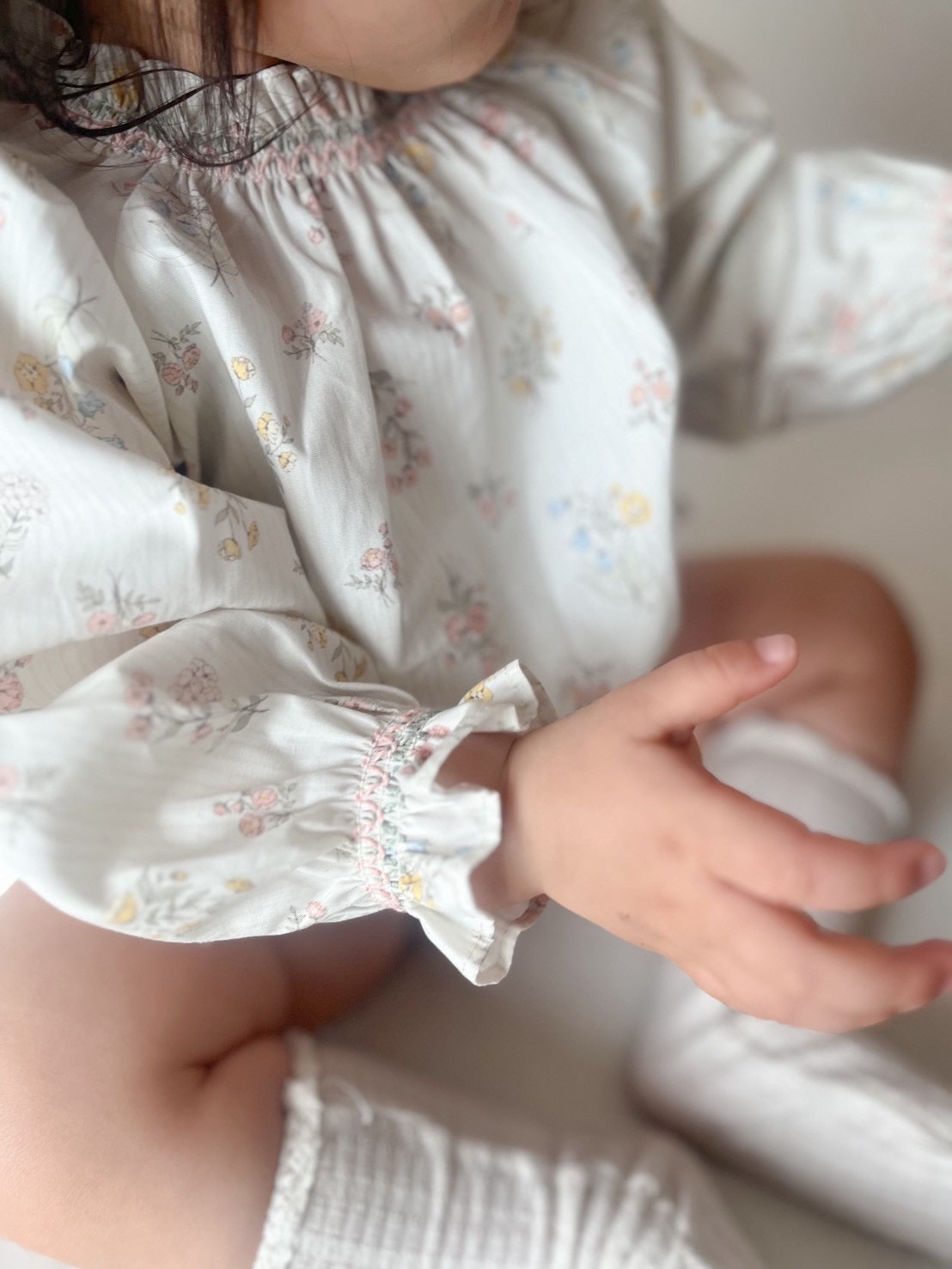 華やかなパターンと配色スモックの組み合わせが愛らしいブラウス。 ネックラインのスモッキングは締めつけ感がなく、柔らかく着られるので動きやすさも◎。 袖口のフリルが可愛いアクセントになっていて、 小花柄・明るいピンク・アイボリーの春らしいカラーがシーズンムードを演出します。