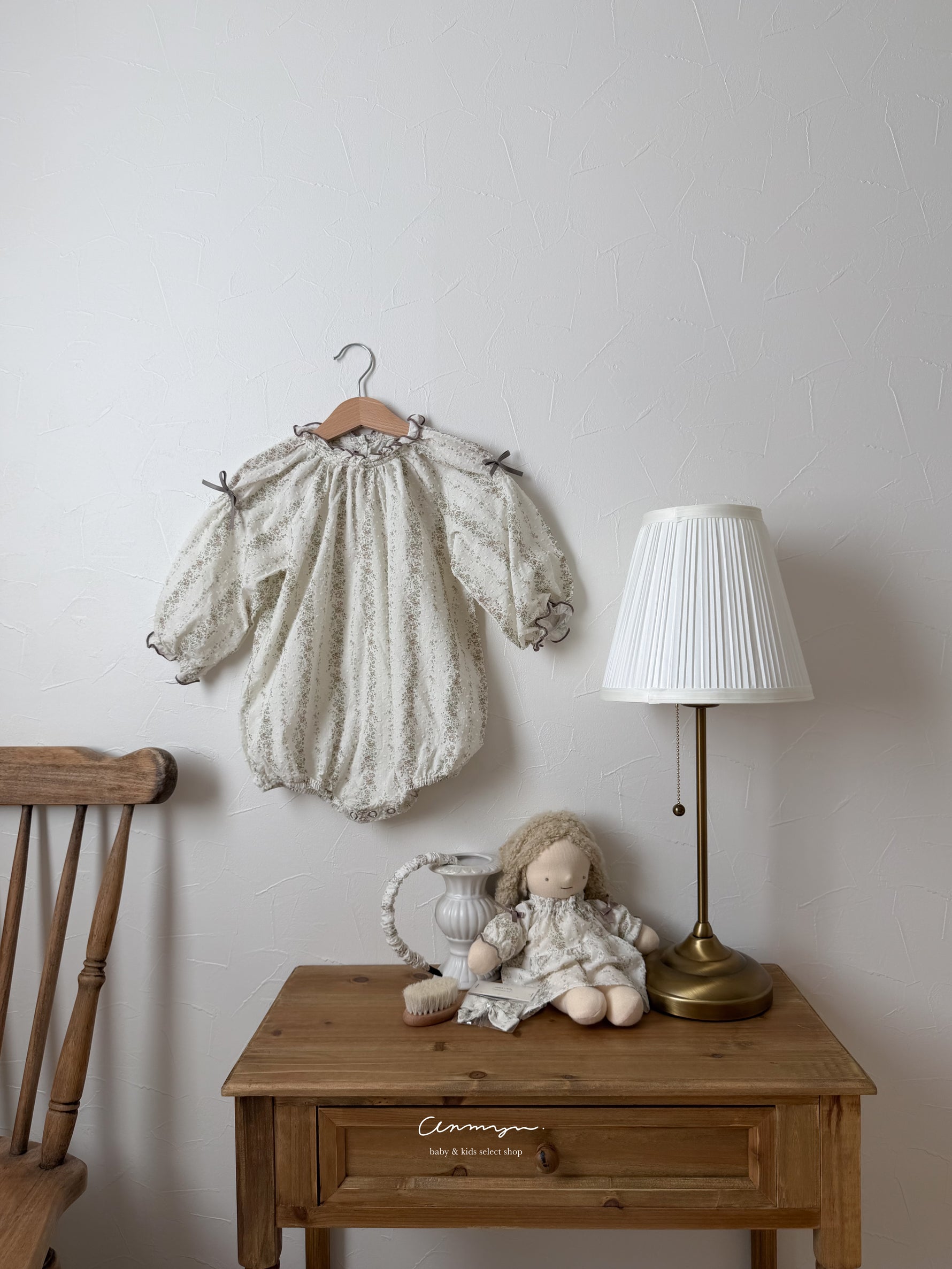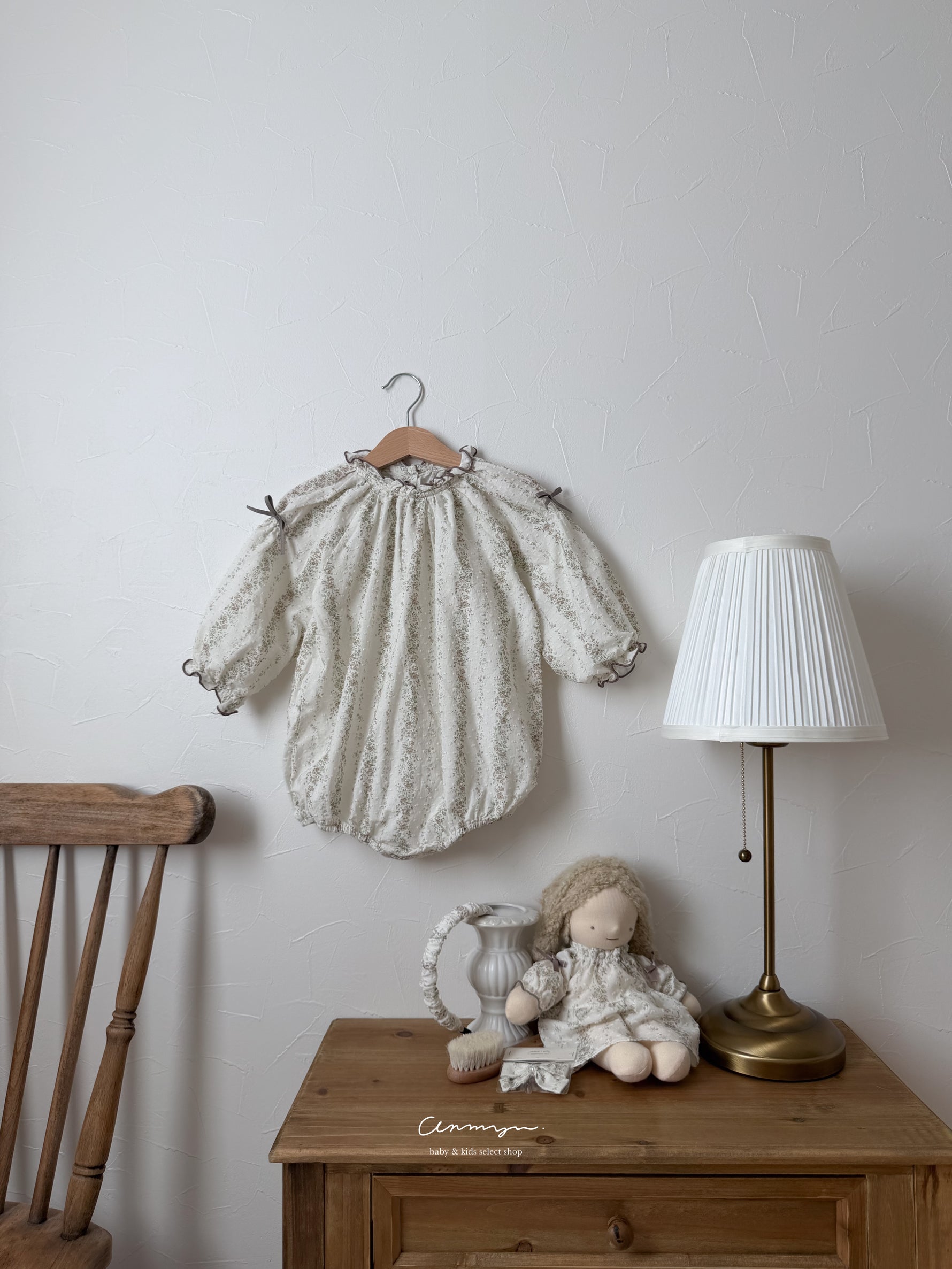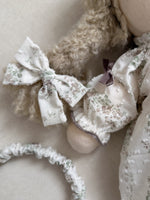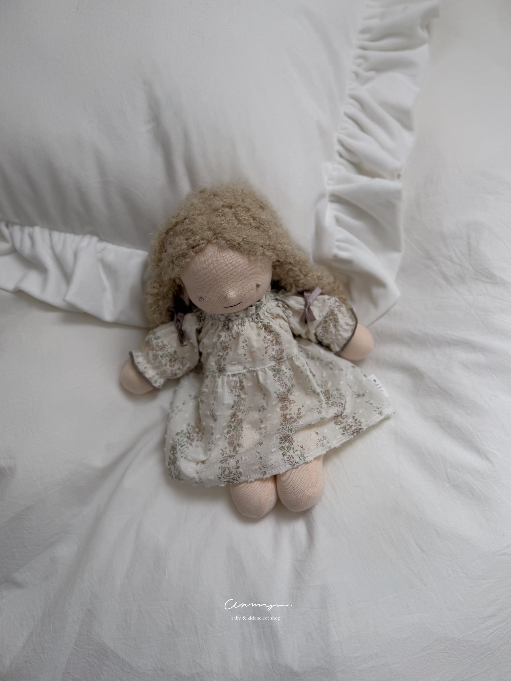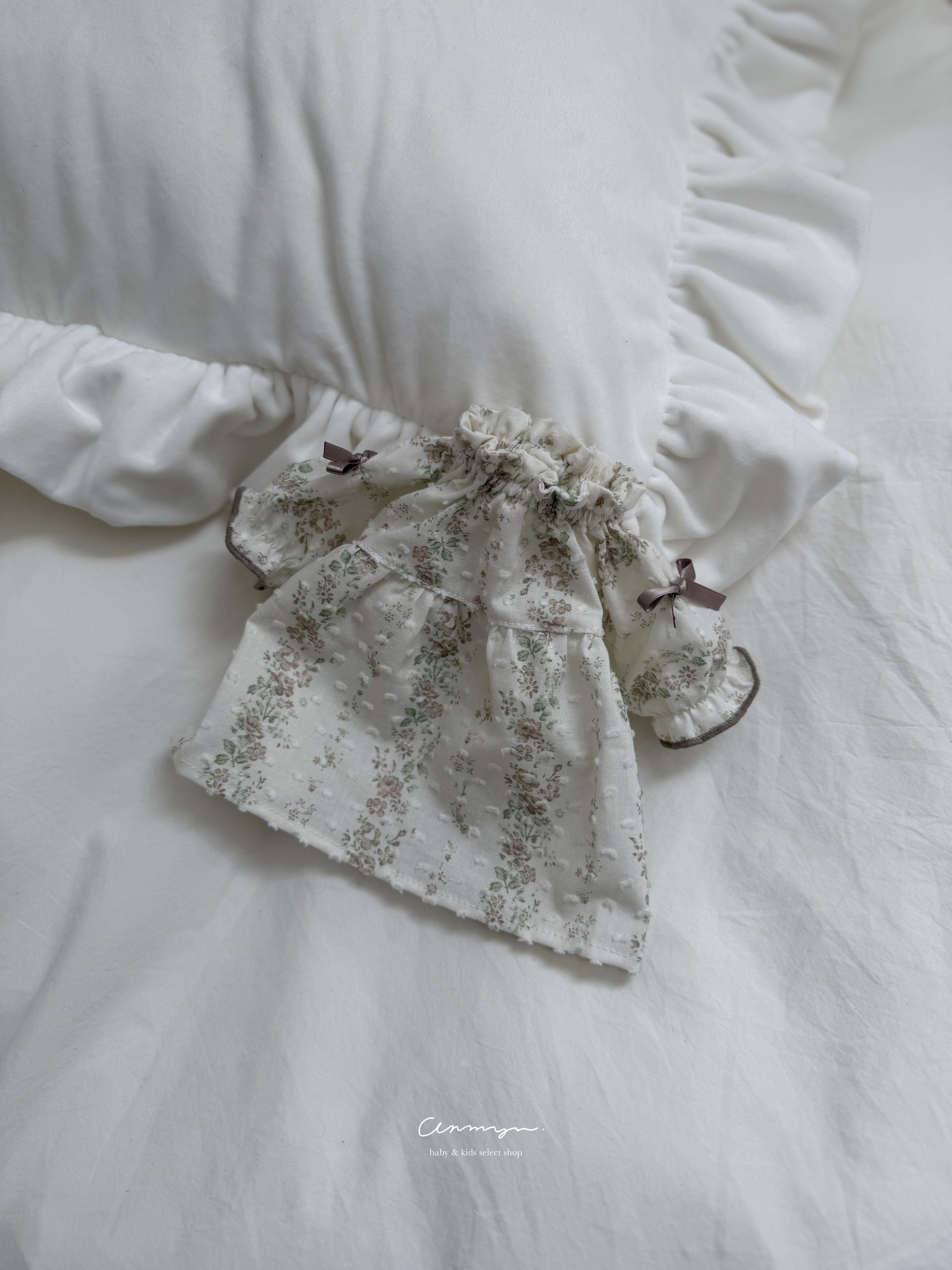 milu × anmyu 特別コラボの「Vello Ruffle Doll ops」は、大人気“vello ruffle rompers”とお揃いで楽しめる30cmドール専用ワンピース。繊細な小花柄とふんわりフリルが特徴で、お子さまのコーデとリンクさせて特別な写真撮影が叶います。優しいカラーがインテリアにも馴染み、ギフトにもぴったり。ロンパースやヘアアクセと揃えて世界観を楽しめる限定デザインです。