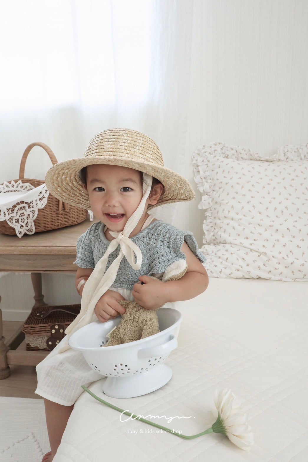 麦わら帽子 #ストローハット #ラフィア風ハット #韓国子供服 #韓国こども服 #ベビー服 #リンクコーデ #韓国子供服anmyu #視界良好ハット #安全帽子