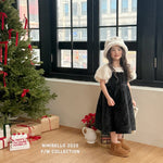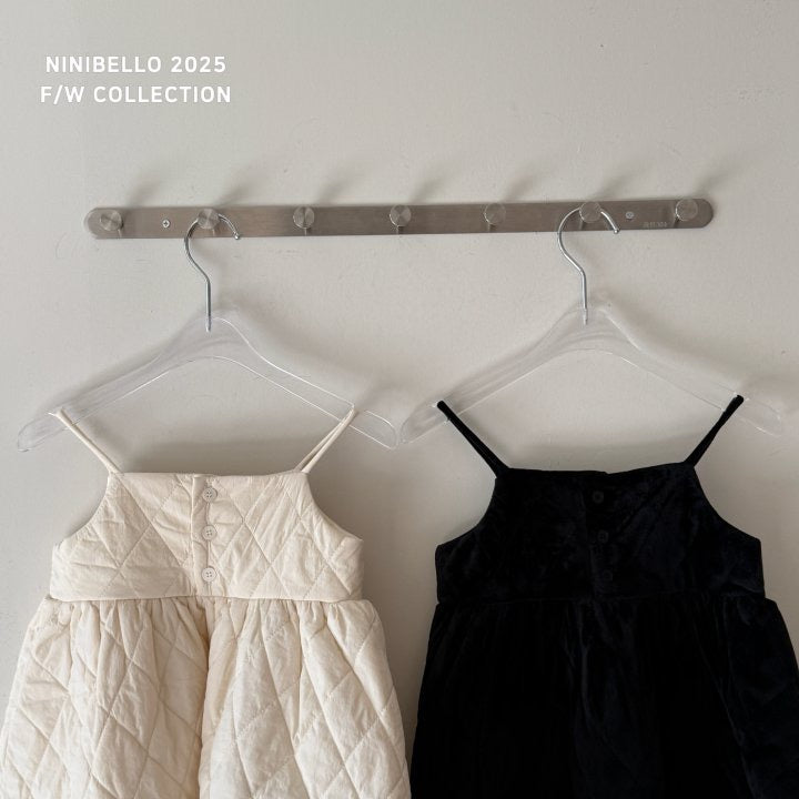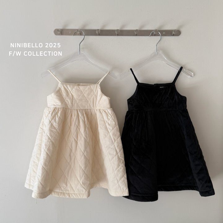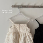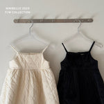 裾広がりのフレアと華奢なストラップで、インナーとの重ね着スタイルが楽しい1着。
