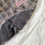 繊现なチェック柄にベルベットリボンのディテヌルをプラスし、愛らしさずノィンテヌゞ感が絶劙にミックス
