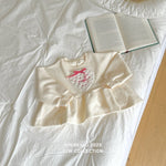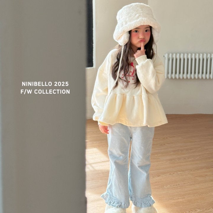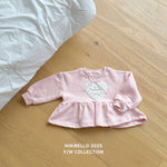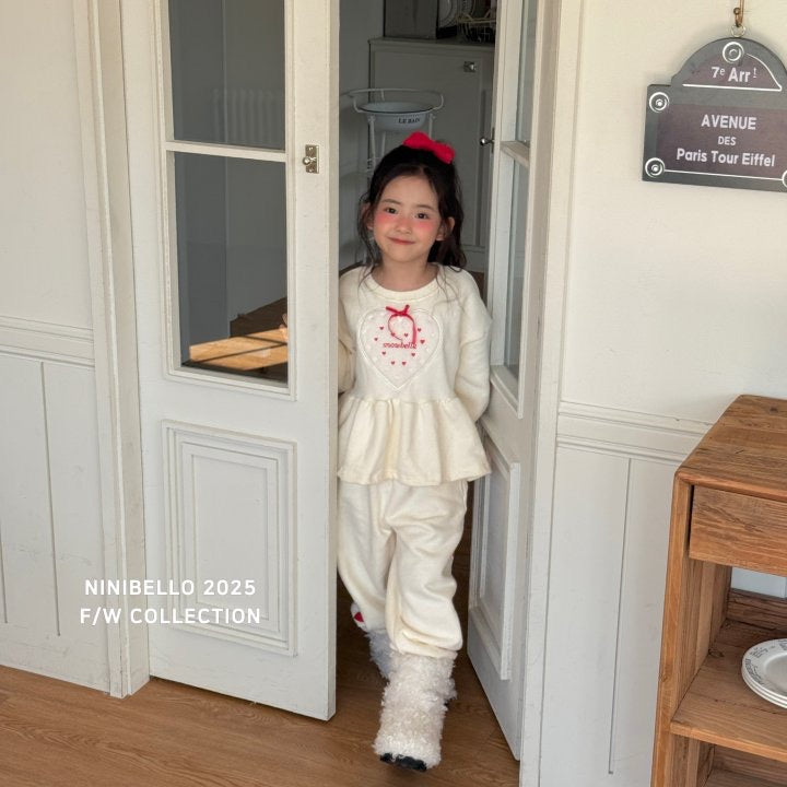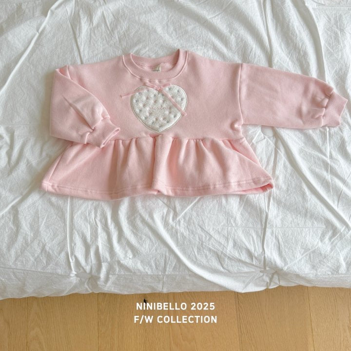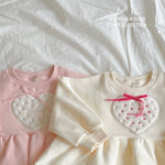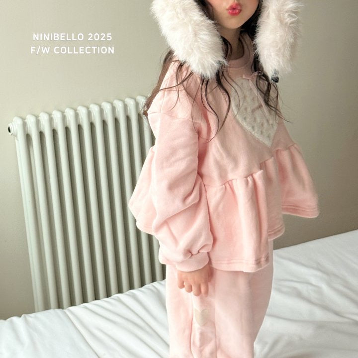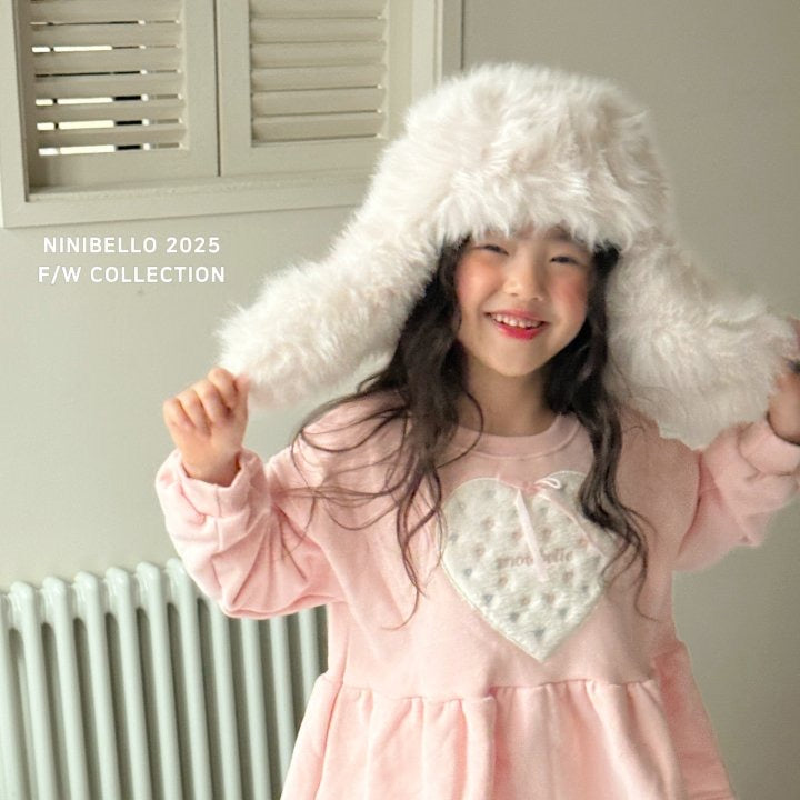前面のハートファーパッチと刺繍、ベルベットリボンが
