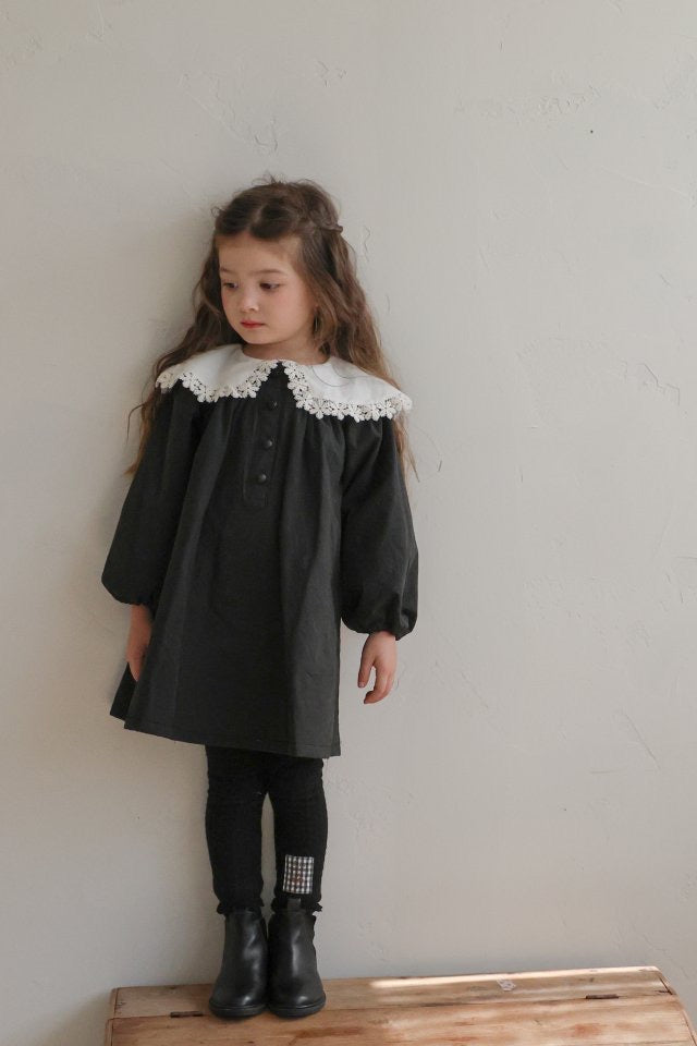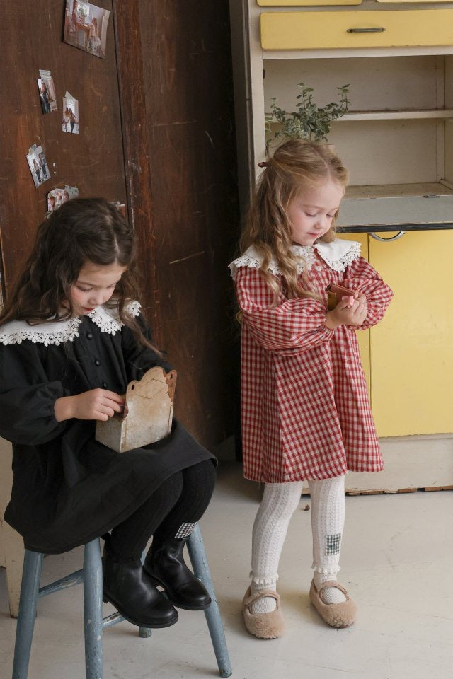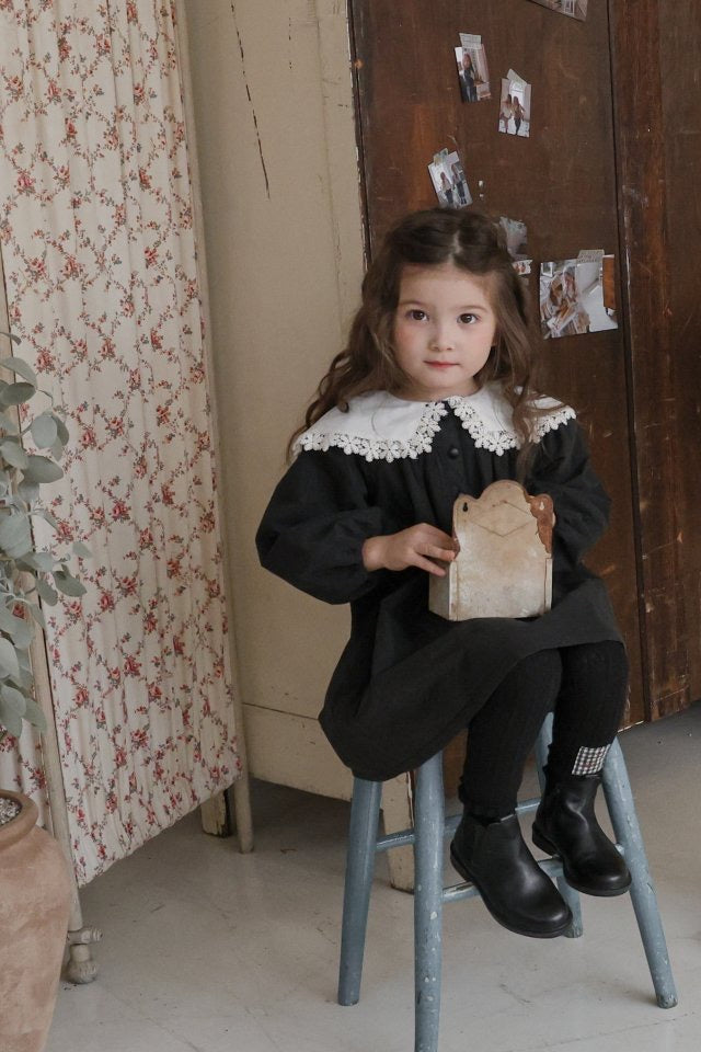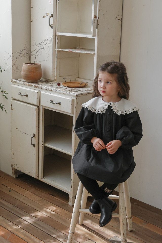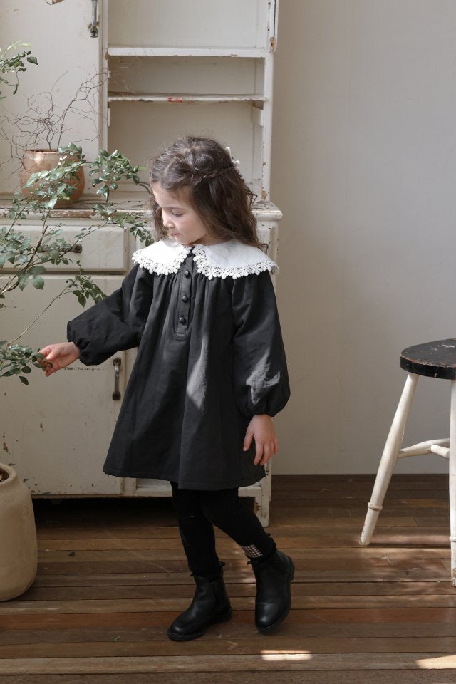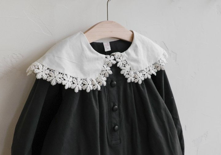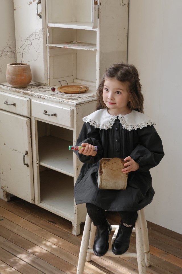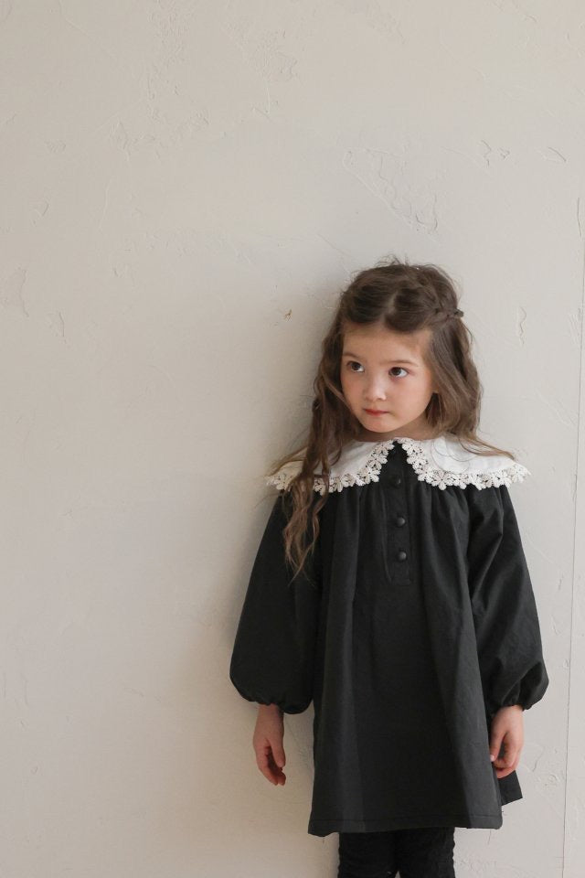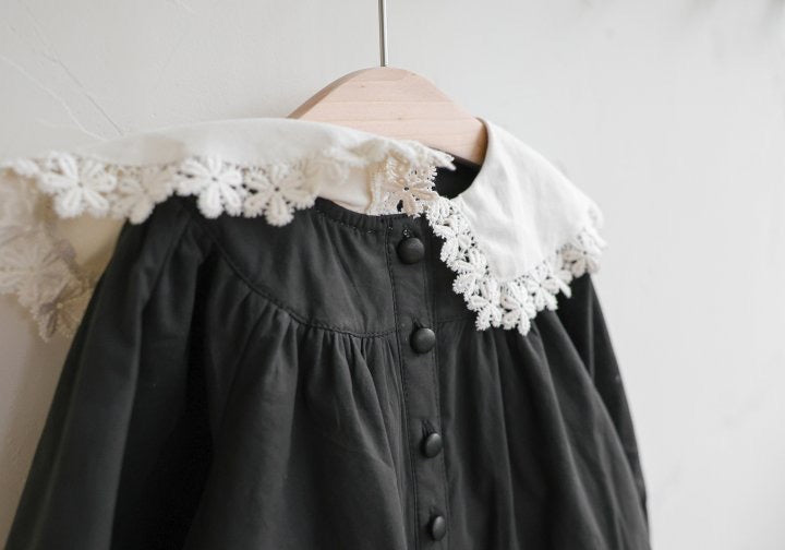 襟のフリルが女の子らしさを引き立て、ボリューム感のあるシルエットは動きの多い日にも快適に着られます。