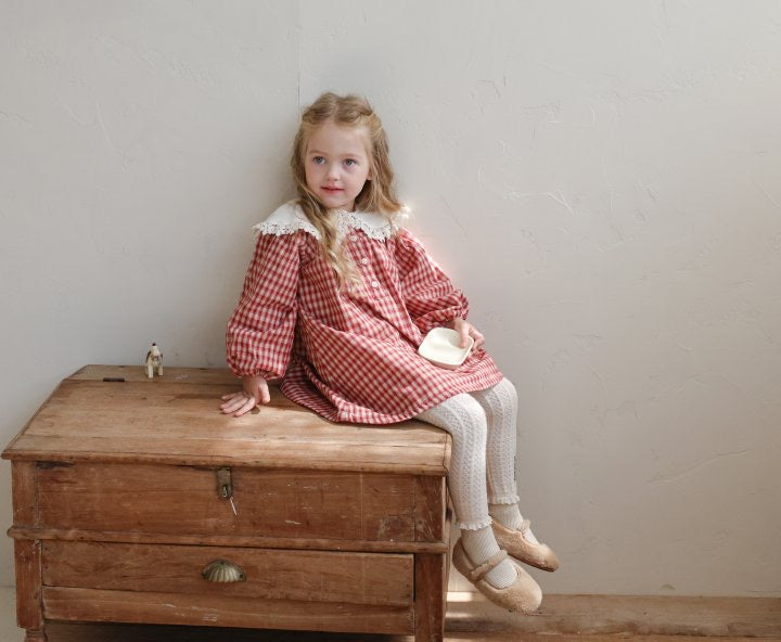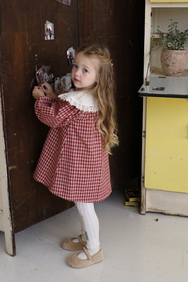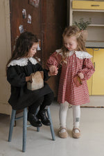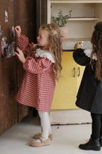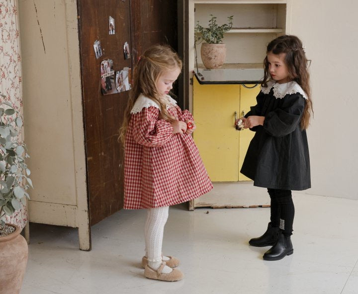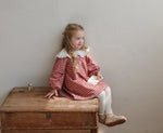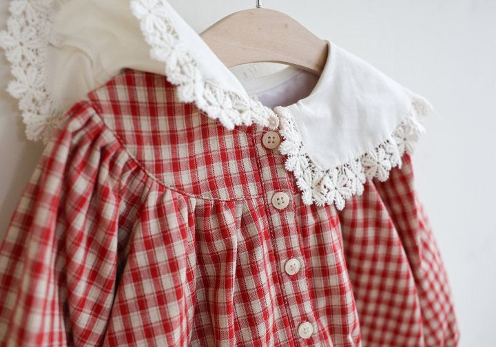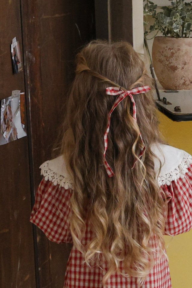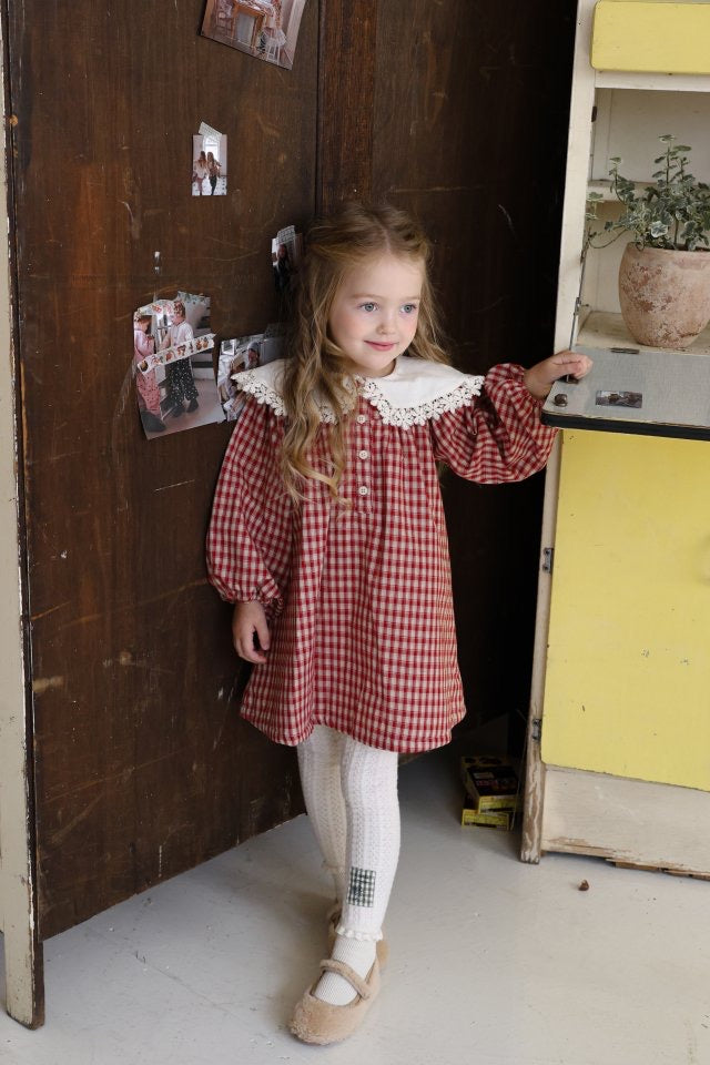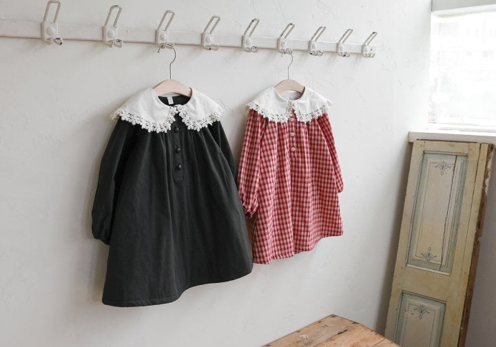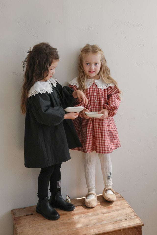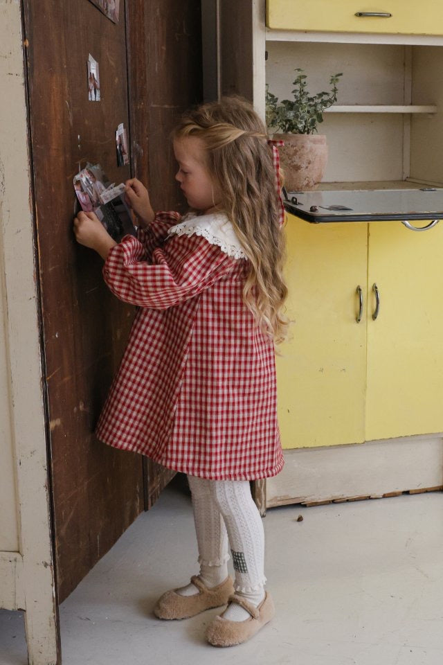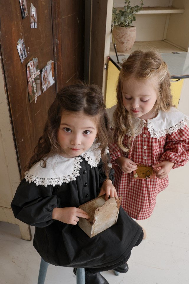 襟のフリルが女の子らしさを引き立て、ボリューム感のあるシルエットは動きの多い日にも快適に着られます。