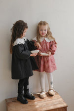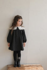 オーバーサイズのシルエットと、愛らしいケープカラーが調和したユニークなラヘルワンピース。