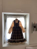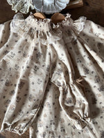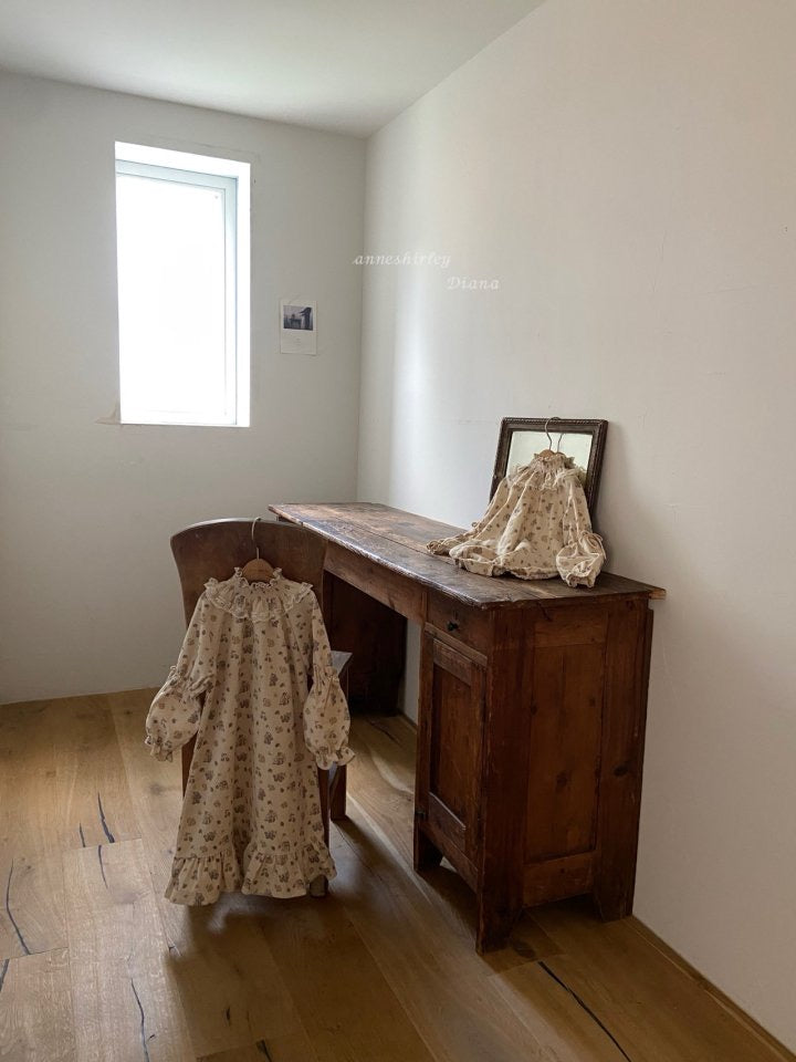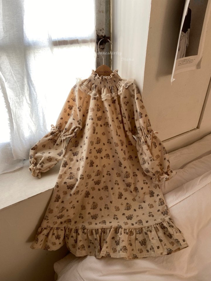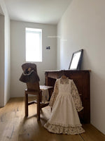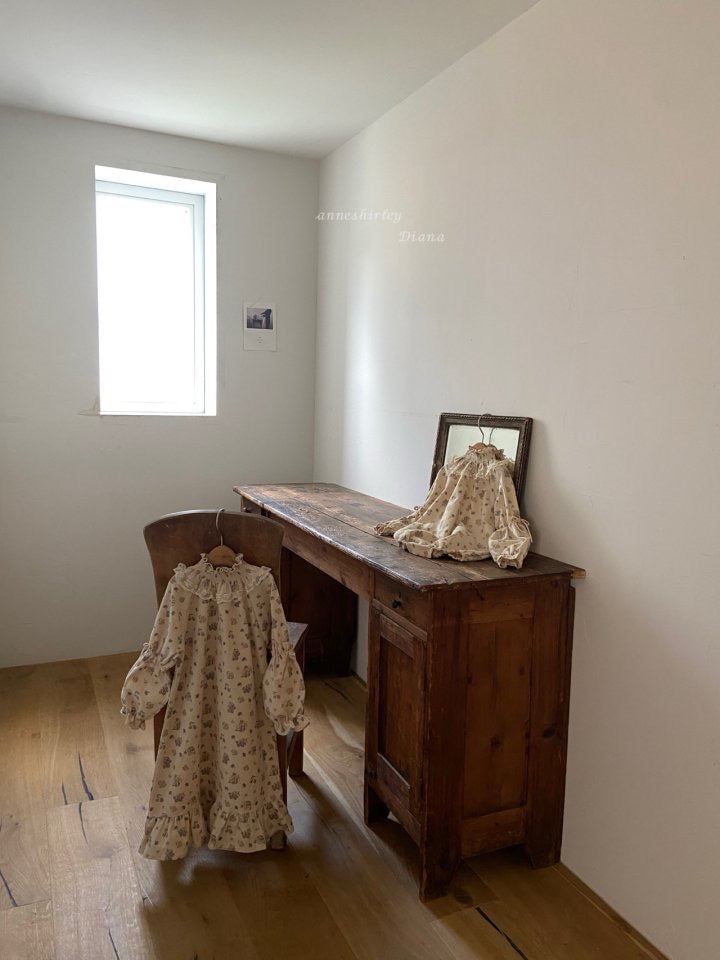 愛らしいデザインのアンシャーリードレス。 スモッキングネックとガーリーレースが魅力。 プリンセス袖とふんわり肩が女の子らしさを引き立てます。