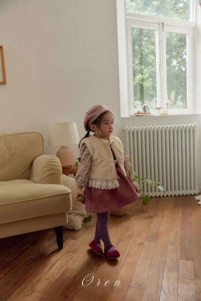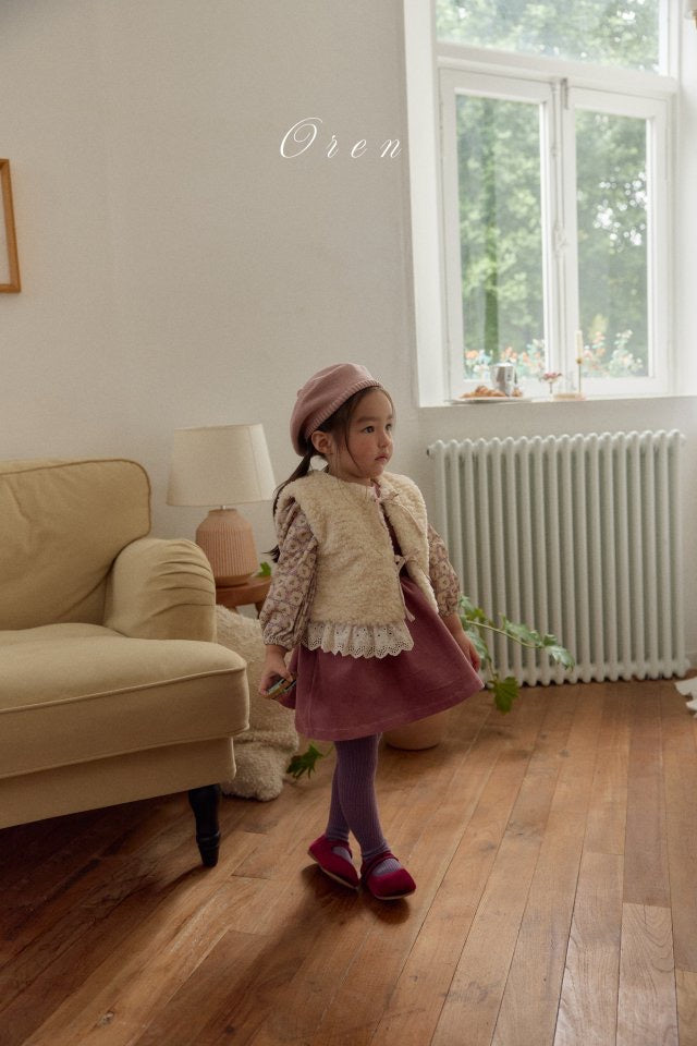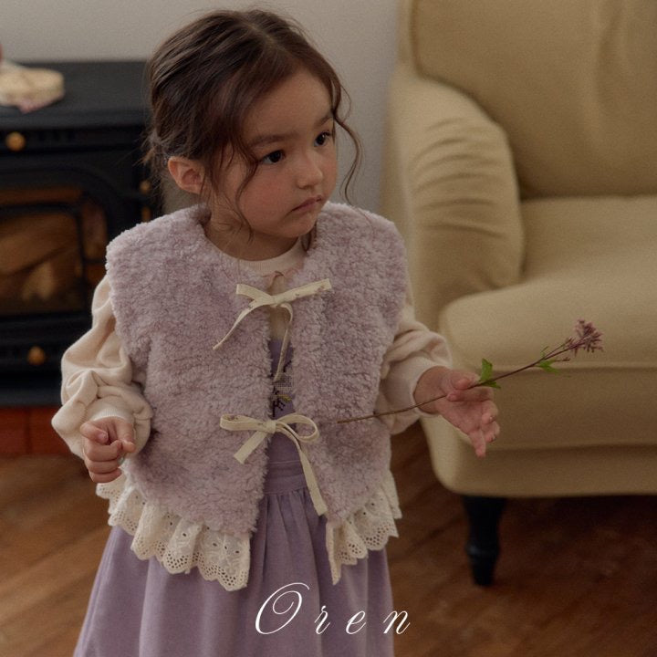 柔らかく暖かなフェイクファー素材を使用した、ORENの冬用ベスト。リボンストラップの開閉でクラシカルな印象をプラスし、肌触りの良い裏地と軽量設計で快適な着用感を実現。ニットやワンピースとの相性も良く、スタイリングのアクセントにおすすめ。