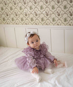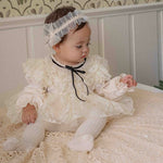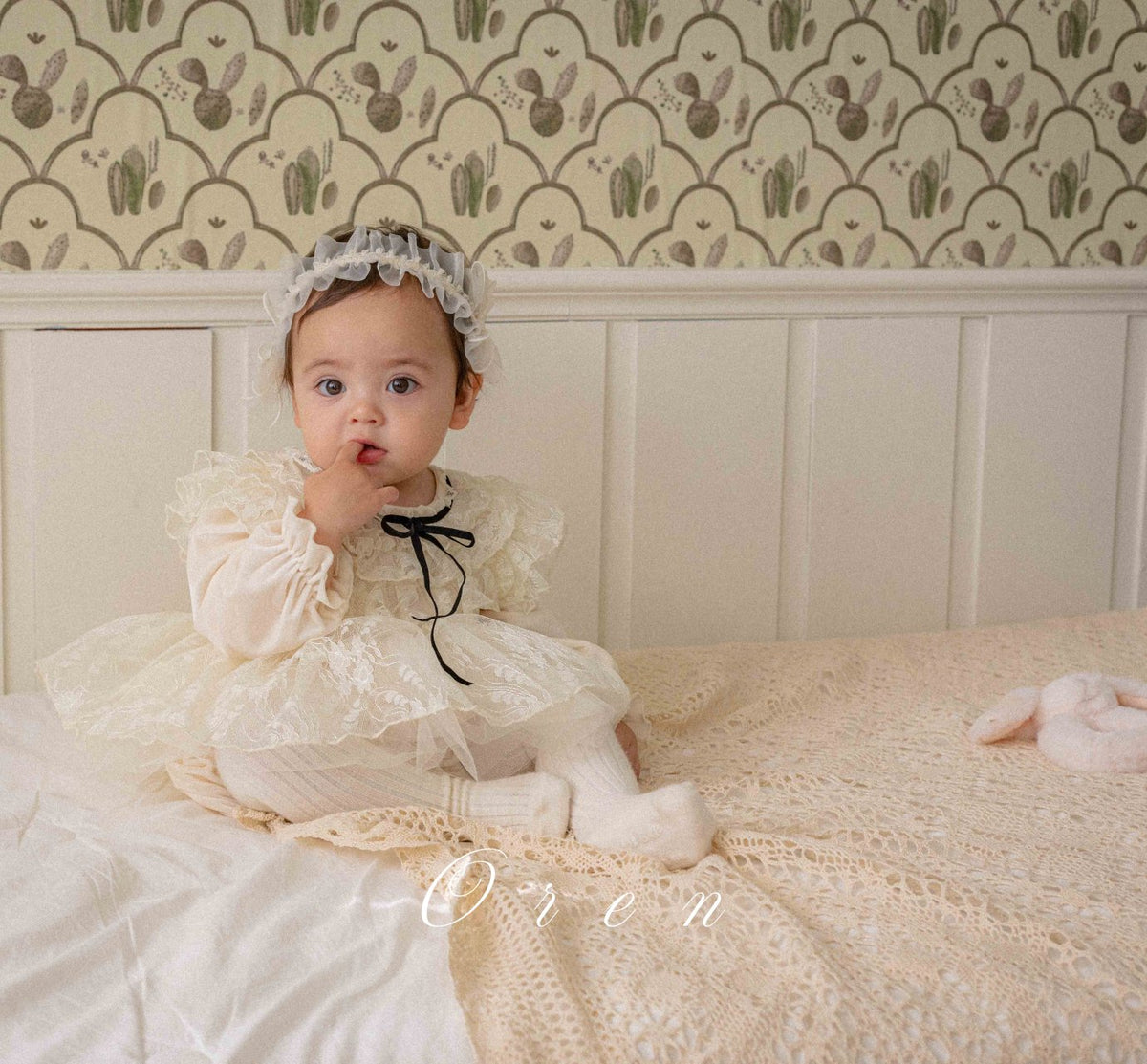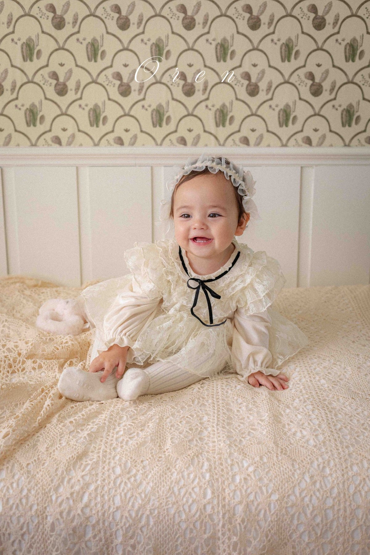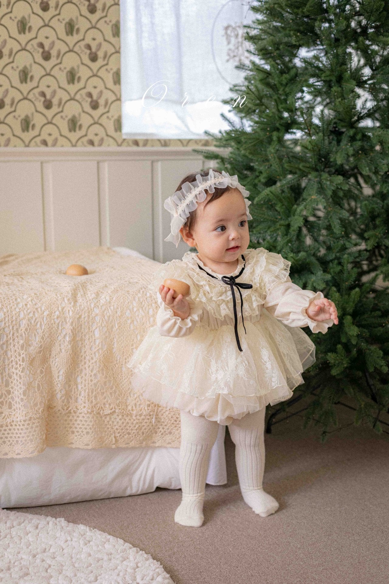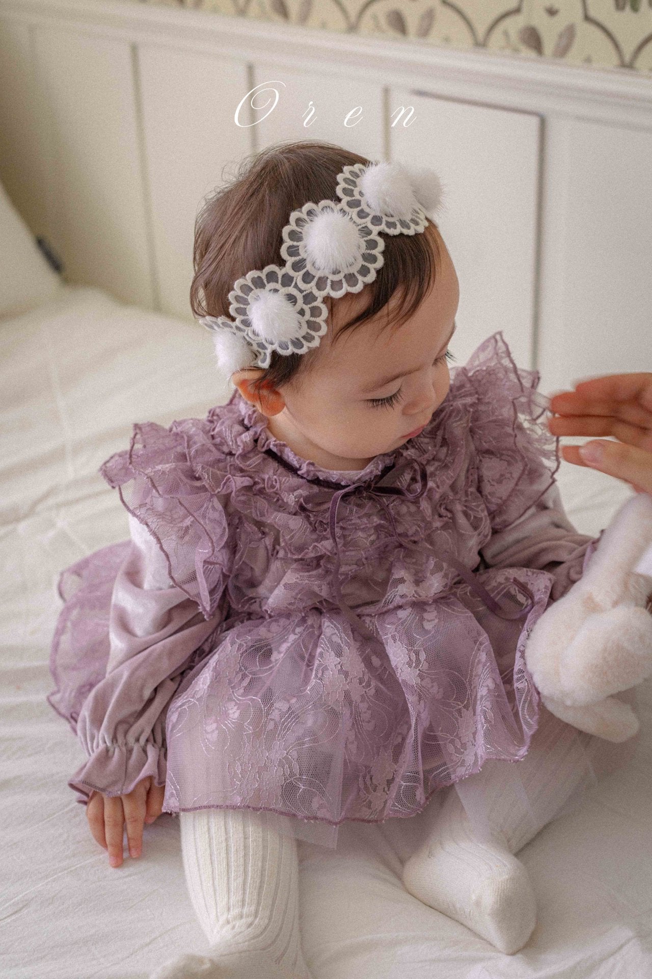 -上品なベルベットテクスチャーに、繊細なレースとチュールディテールを重ねたプレミアムスーツ。ふんわりとしたレースフリルとベルベットリボンが視線を惹きつけ、チュールスカートを重ねたボリューム感のあるシルエットが愛らしさを引き立てます。お宮参りやバースデー、記念撮影など特別な日にぴったりのフォーマルウェアです。