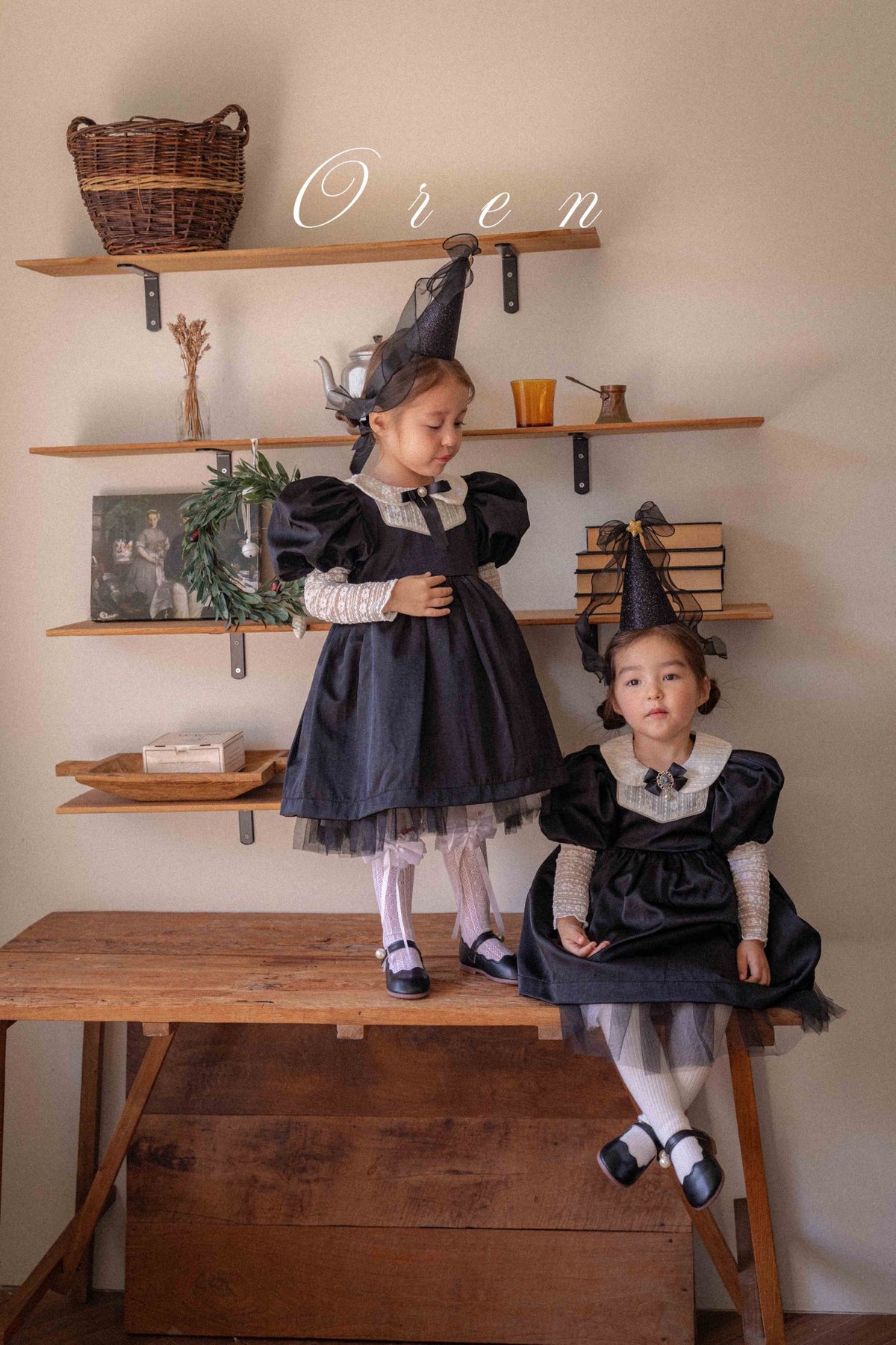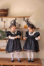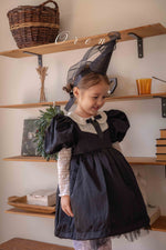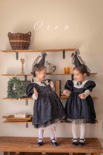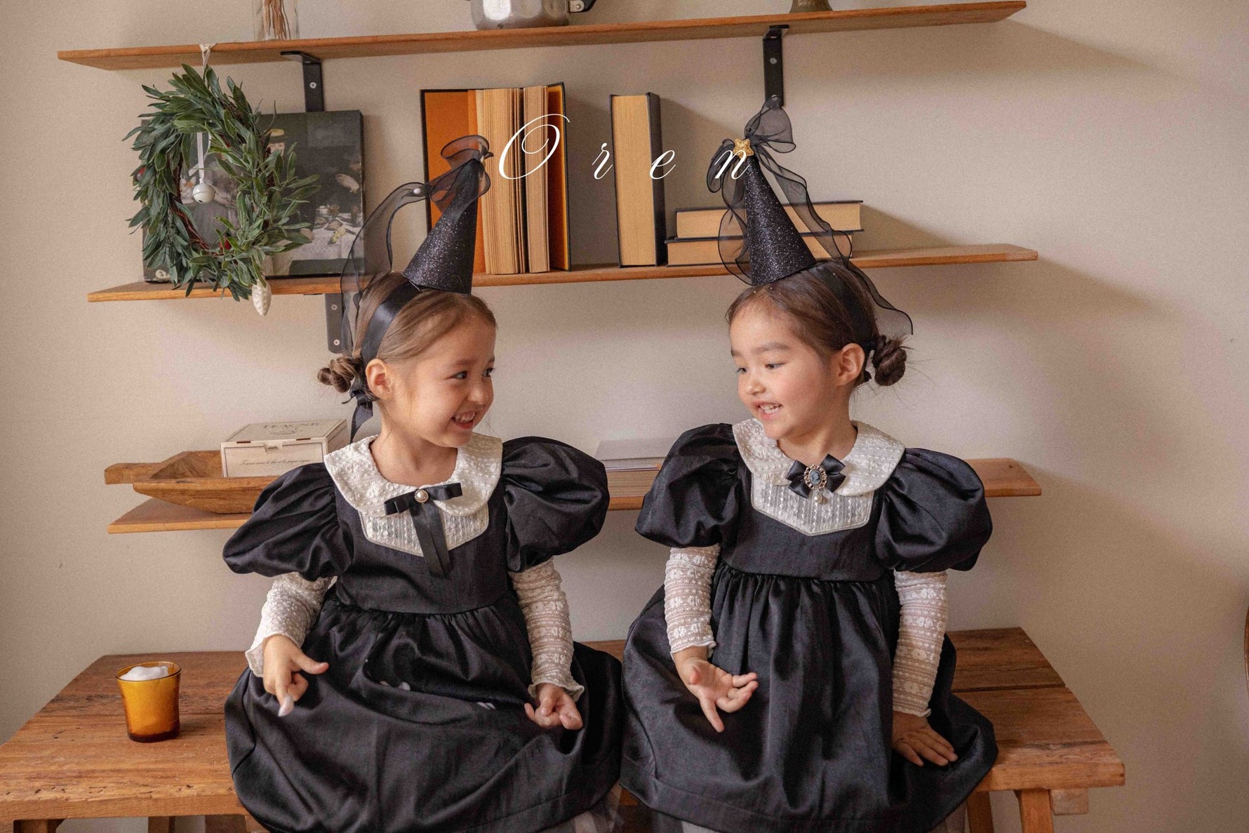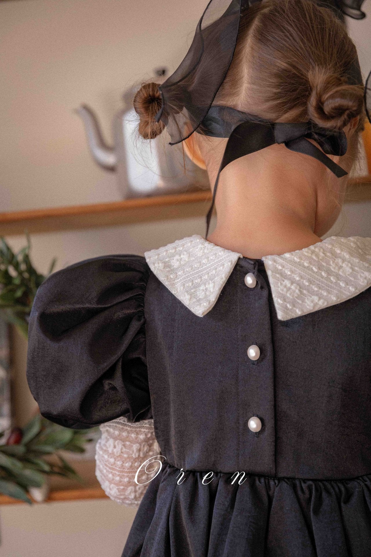 -上質なボンディング素材で仕立てたルベリアドレスは、クラシックなムードと愛らしさを兼ね備えたデザイン。ブラックトーンの生地にレースディテールを重ね、控えめな光沢感で上品な印象に仕上げています。パフスリーブとふんわり広がるスカートがロマンティックな雰囲気を演出し、ヴィンテージ調のブローチが特別感をプラス。軽やかで保温性のある素材を使用しており、肌あたりも柔らかく快適。ハロウィンからクリスマス、年末のパーティーシーンまで活躍する一枚です。同素材のルベリアボンネットと合わせれば、より完成度の高いフレンチヴィンテージスタイルに。コサージュはランダムで発送されます。