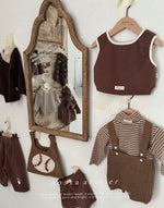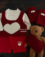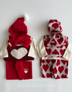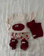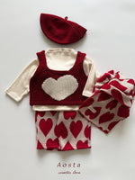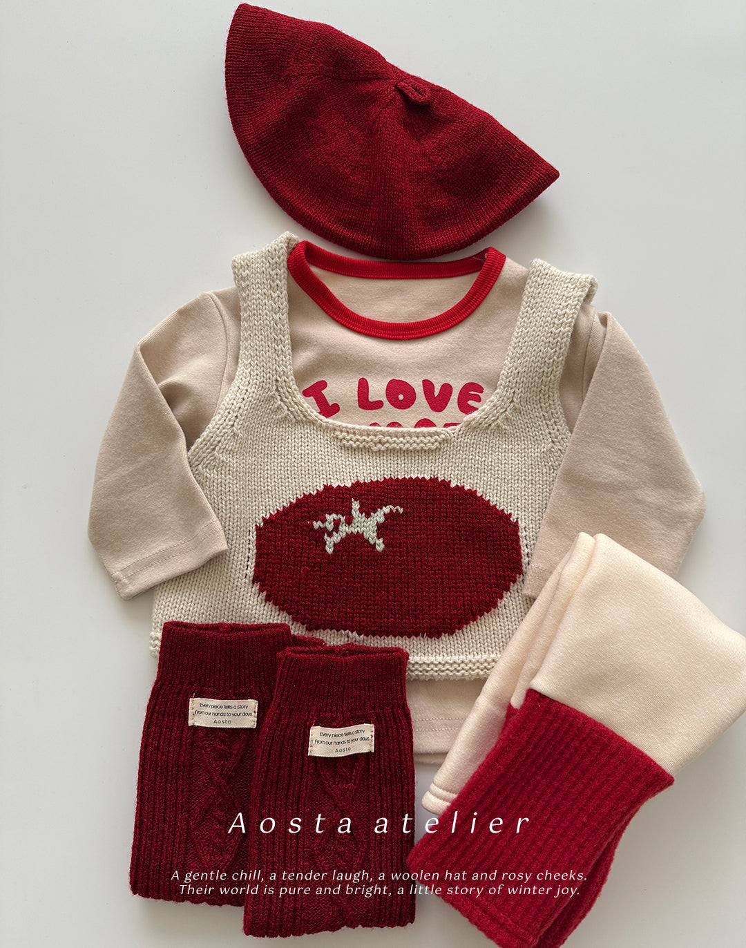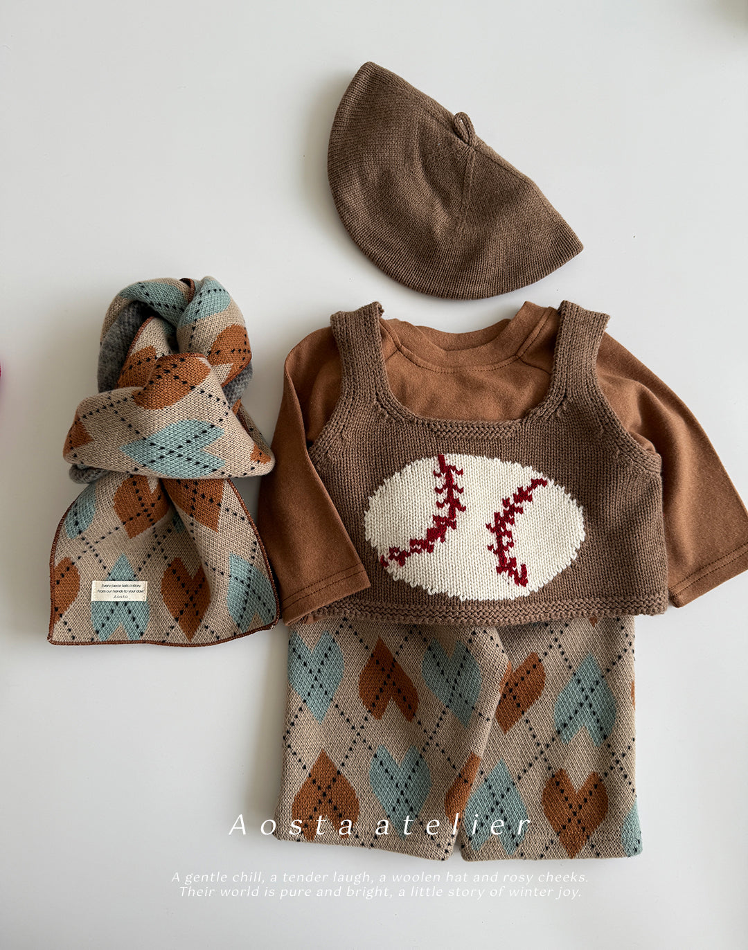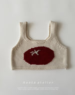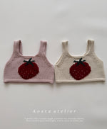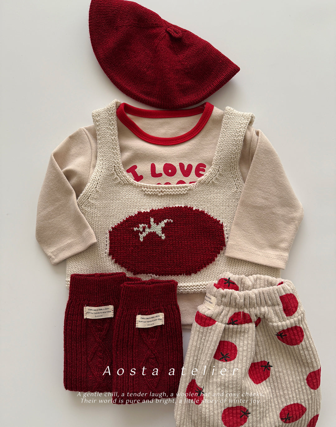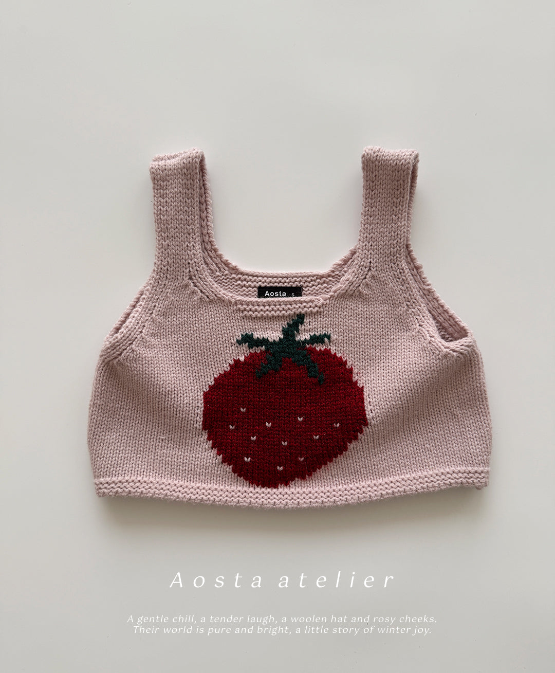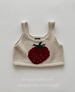 いちご・ハート・野球・トマトのモチーフ付きニットベスト。個性的で可愛らしいデザイン。