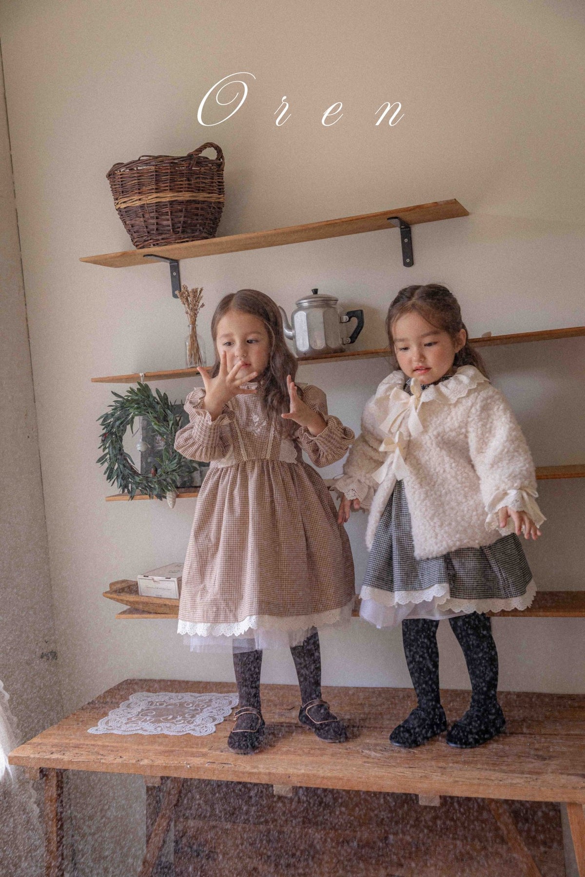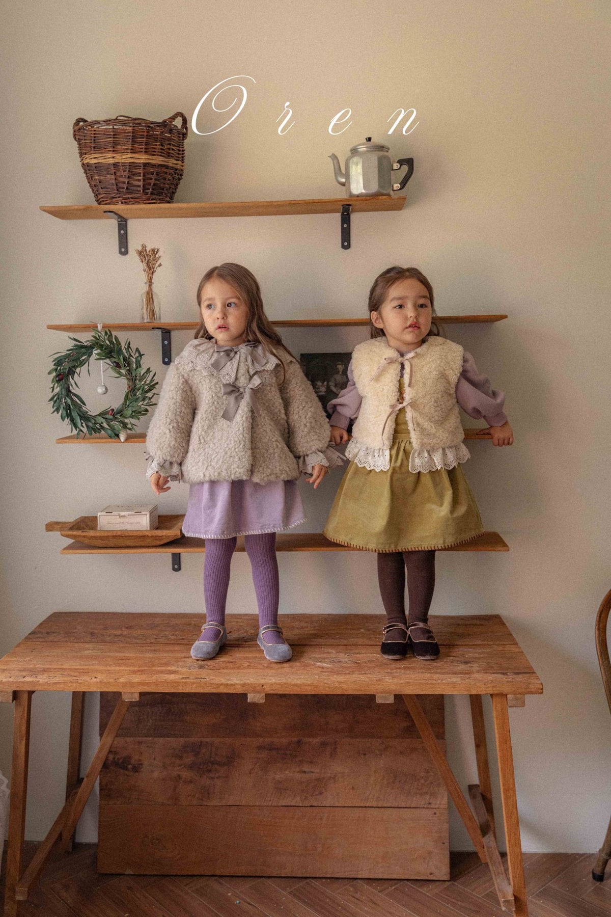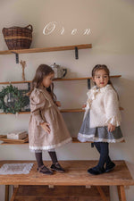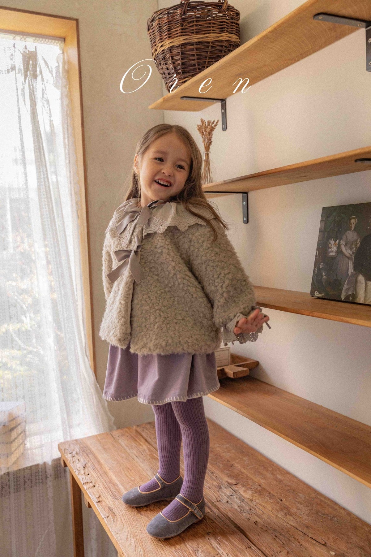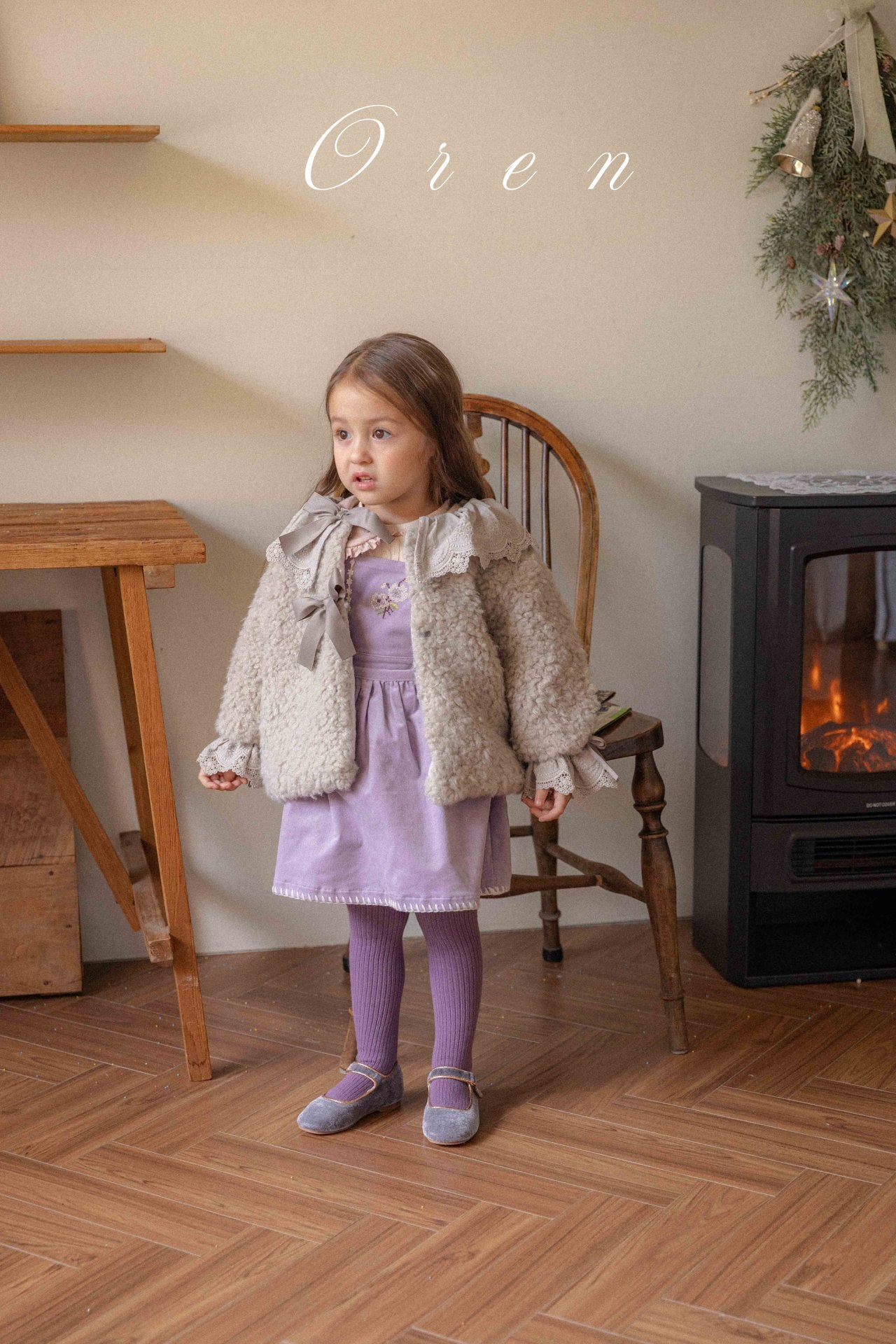 -ふんわりとしたテクスチャのボア素材に、繊細なレースカラーとリボンディテールをあしらった、ORENのロマンティックな冬のアウター。柔らかな起毛感のあるボア生地とレースの曲線が調和し、あたたかく上品な雰囲気を演出します。襟元と袖口にはクラシックな刺繍レースとリボンをあしらい、特別感のあるポイントに。ドレスやニットの上に軽く羽織るだけで、愛らしさと上品さを兼ね備えたスタイルが完成します。寒い季節をあたたかく包み込みながら、美しさとやさしさを感じさせる一着です。