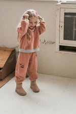 手首と裾にリブを施したジョガースタイルで、動きやすさと可愛らしさを両立。