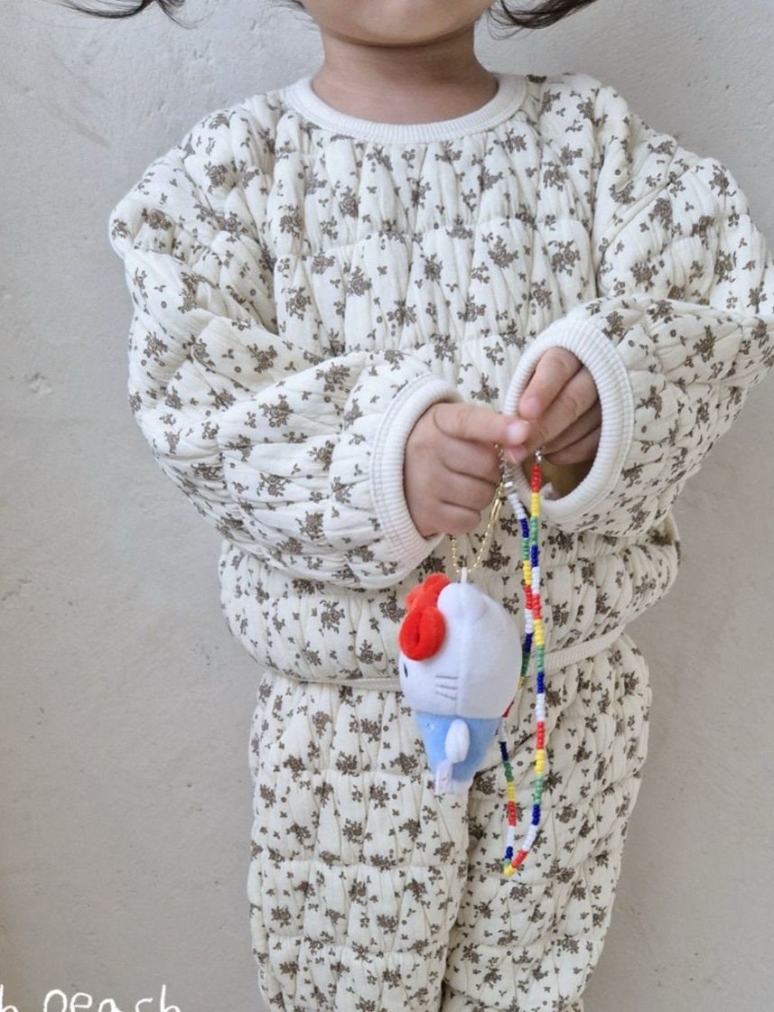 -柔らかくふっくらとしたキルティングコットン素材を使用したボソンスウェット。見た目にもあたたかく、着心地は軽やかで快適。活動的な日常にもぴったりの一枚です。やさしい花柄生地を使用し、冬のスタイルにぬくもりと可愛らしさを添えてくれます。どんなボトムスにも合わせやすく、季節を通して長く愛用できるアイテムです。