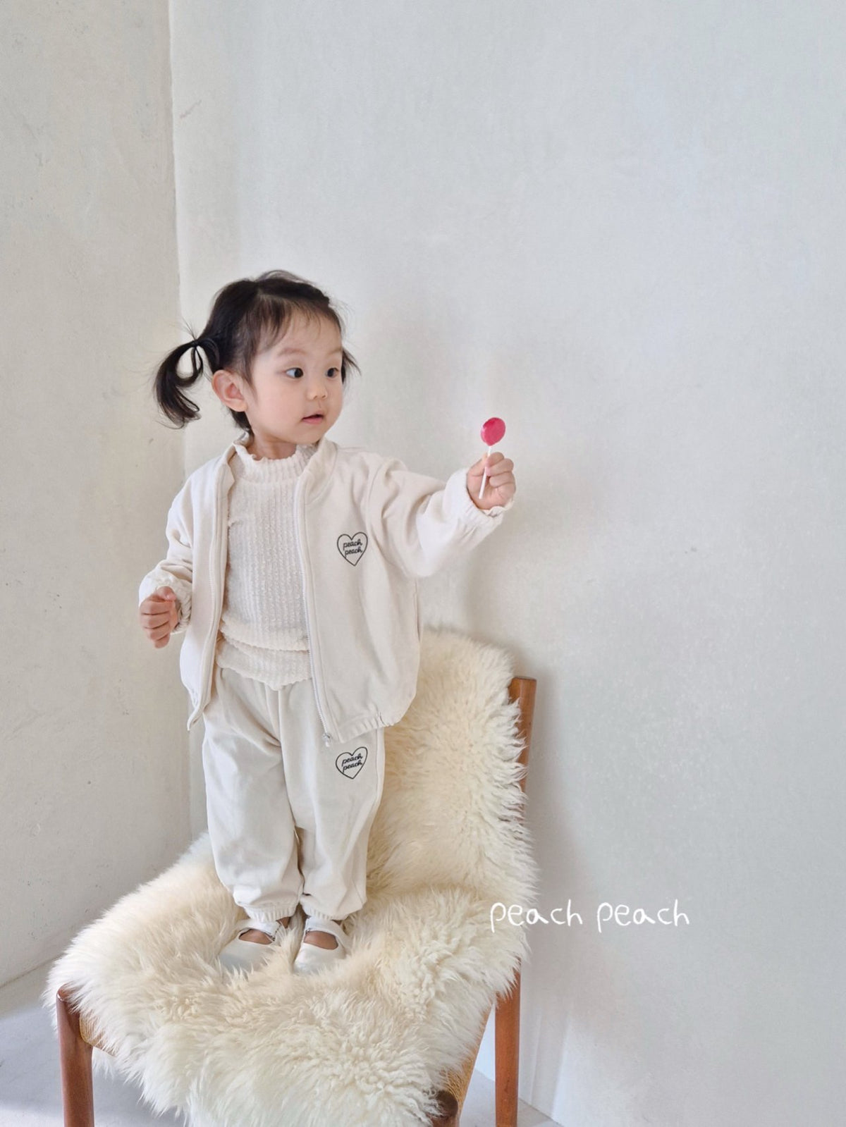 -高品質なフリース素材を使用したあたたかいジップアップ。毛羽立ちが少なく、なめらかで軽い着心地が魅力です。保温性が高く、快適に過ごせるベーシックなデザイン。胸元には愛らしいPeach Peachのロゴ刺繍を施し、シンプルながらも上品なアクセントをプラス。パンツとセットアップで着用すれば、冬のお出かけスタイルにもぴったりです。