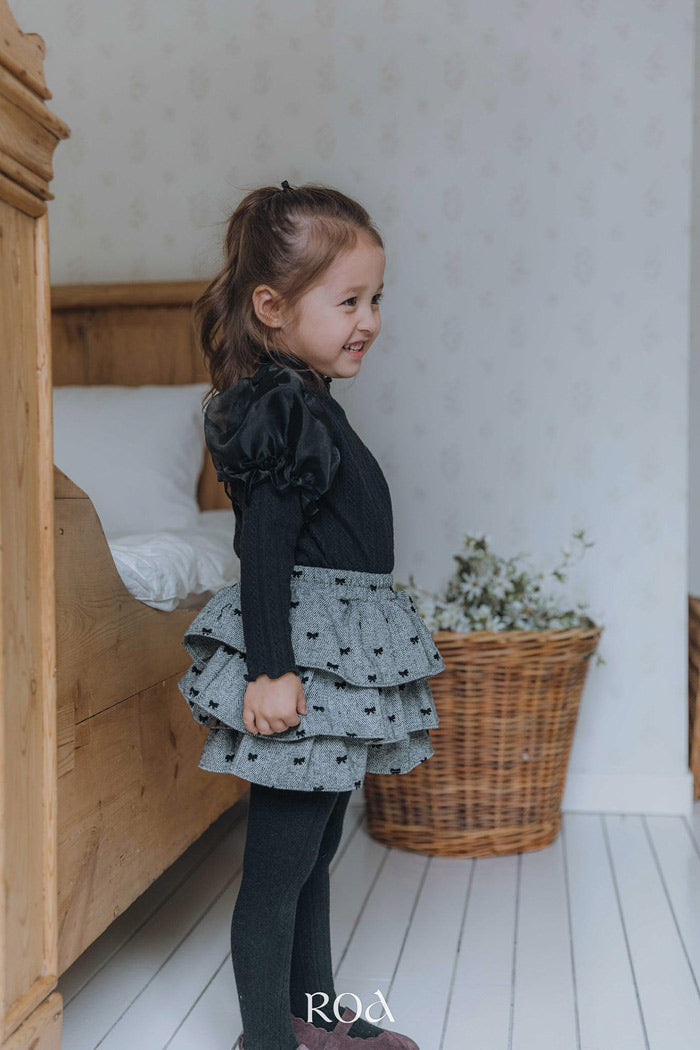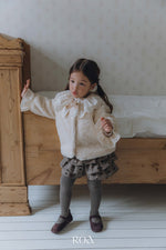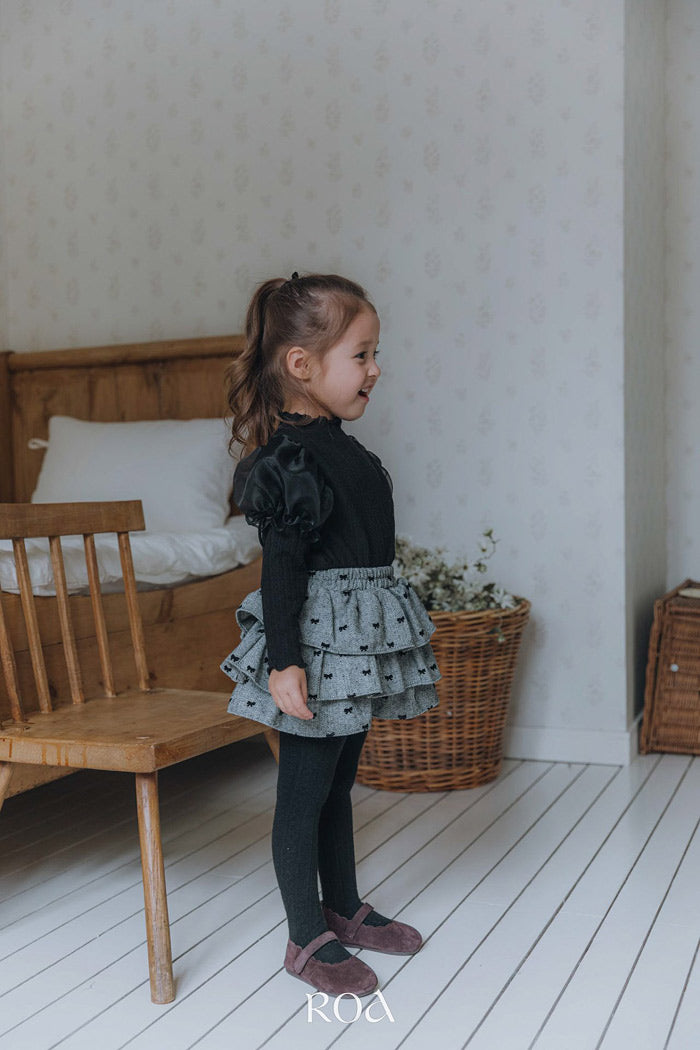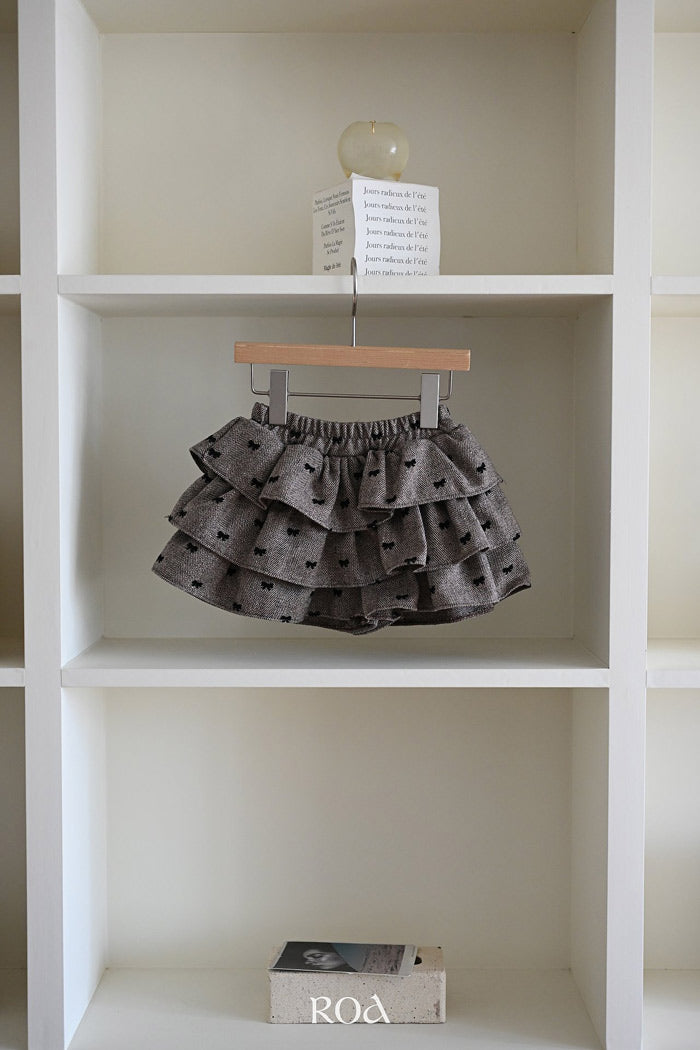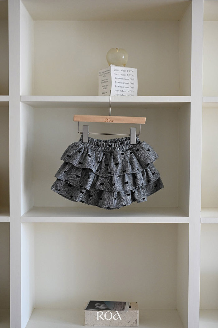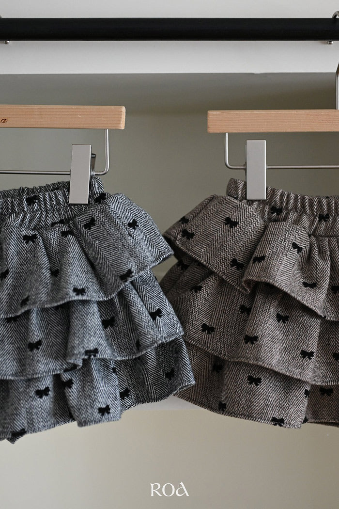 ロアのシグネチャーアイテム「クロイ フリルパンツ」。高密度ジャカード生地にリボンフロッキングが際立つ、冬バージョンの特別なデザインです。