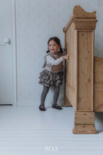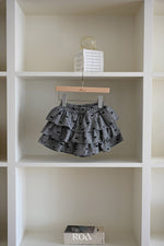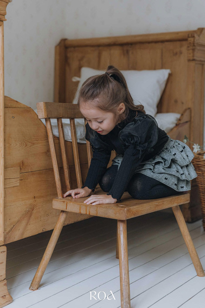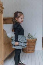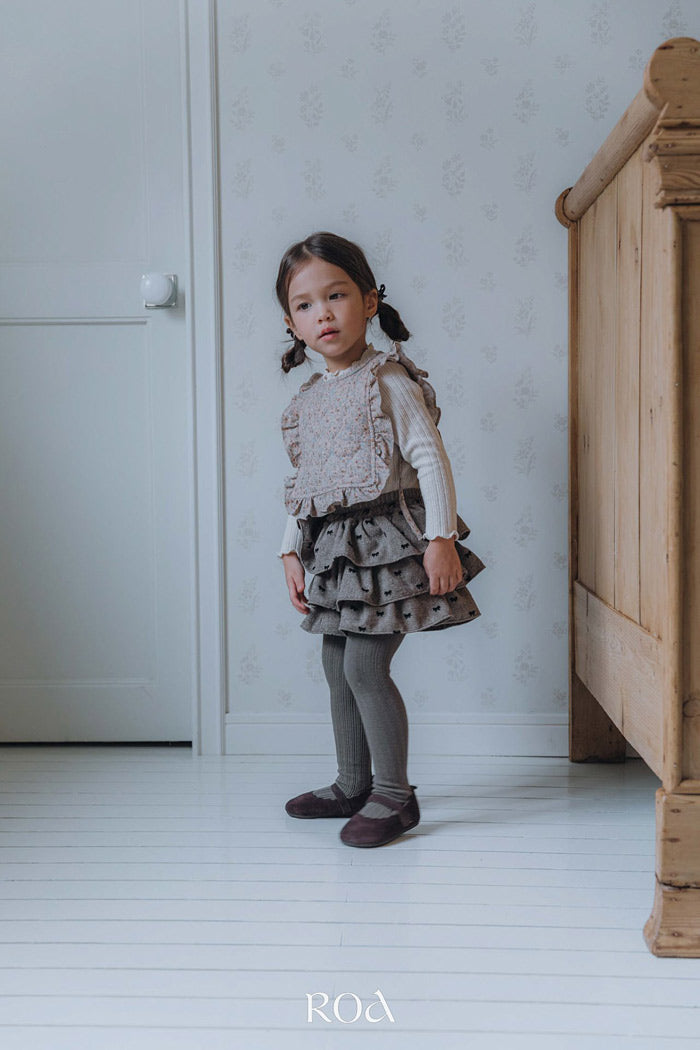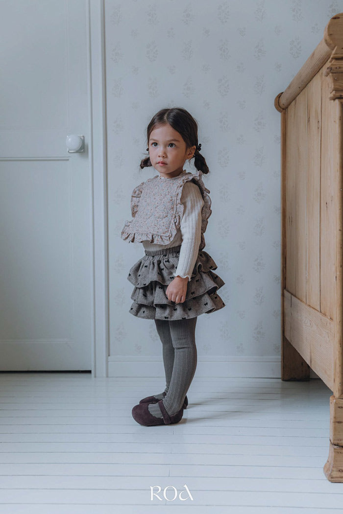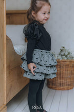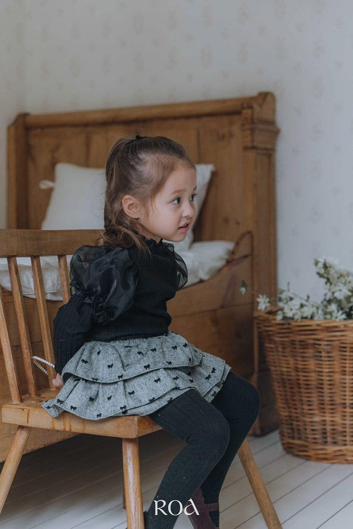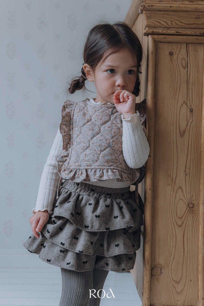 ロアのシグネチャーアイテム「クロイ フリルパンツ」。高密度ジャカード生地にリボンフロッキングが際立つ、冬バージョンの特別なデザインです。