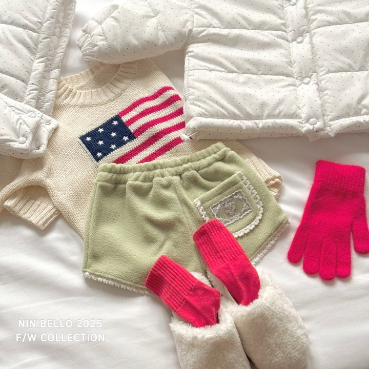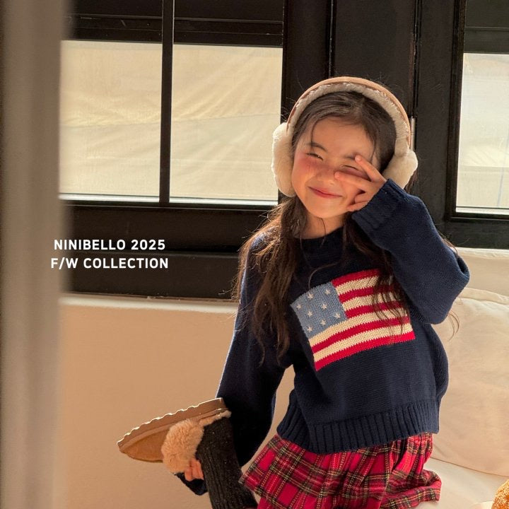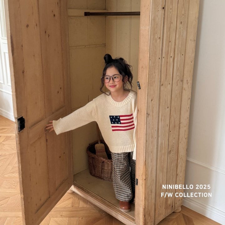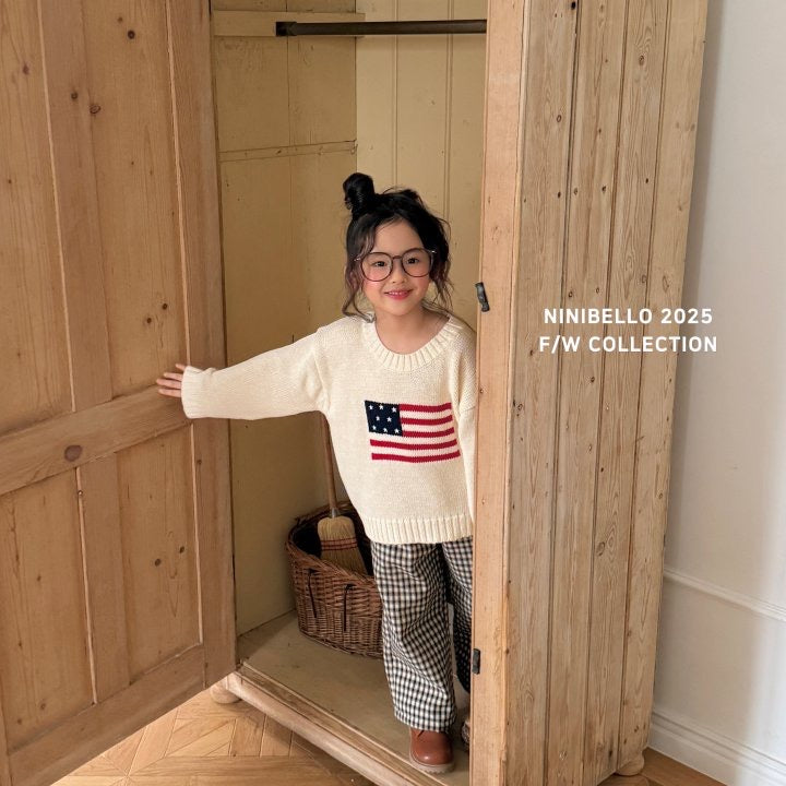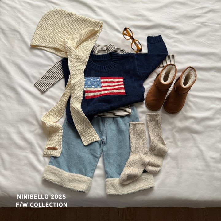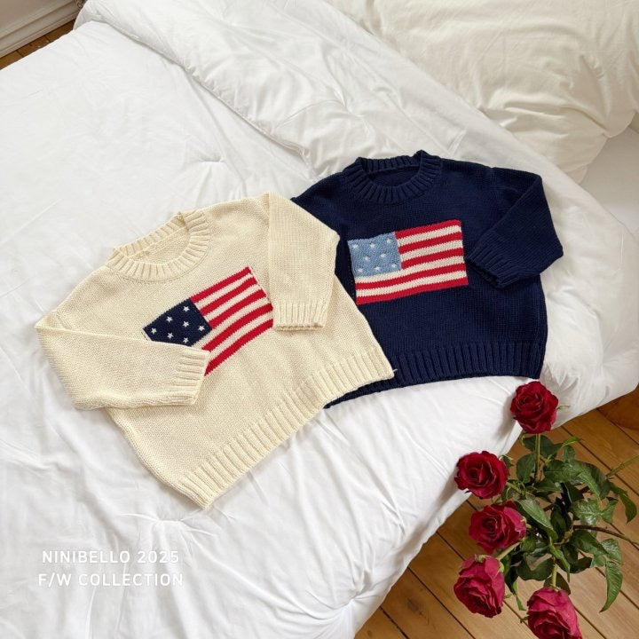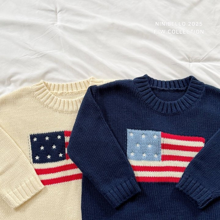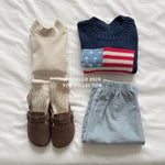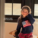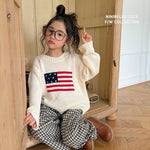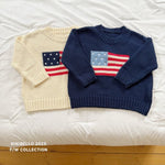 胸元の星条旗モチーフが印象的なレトロ感たっぷりのコットン100%ニット。肌触りも◎
