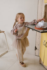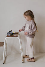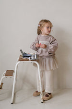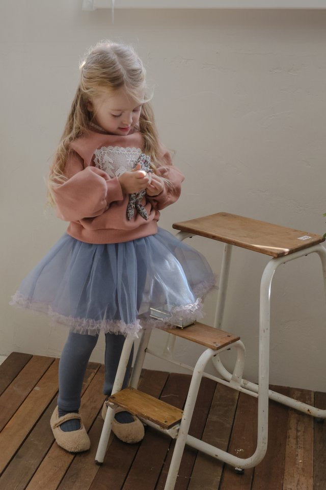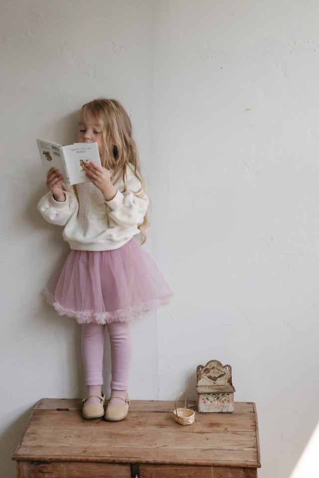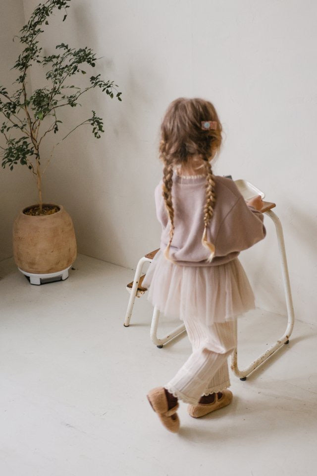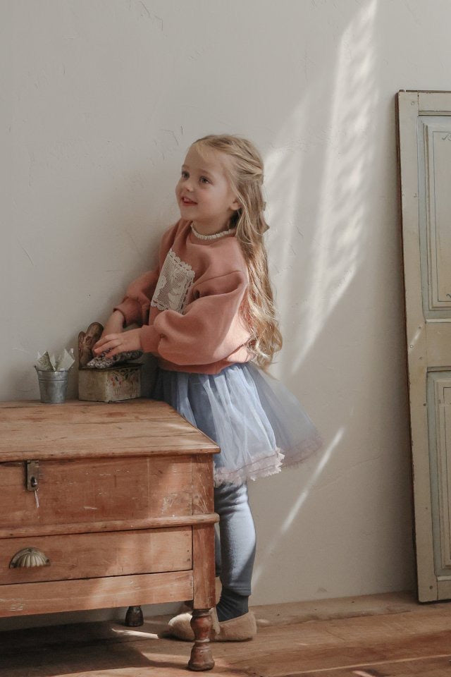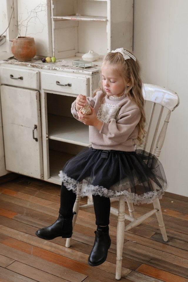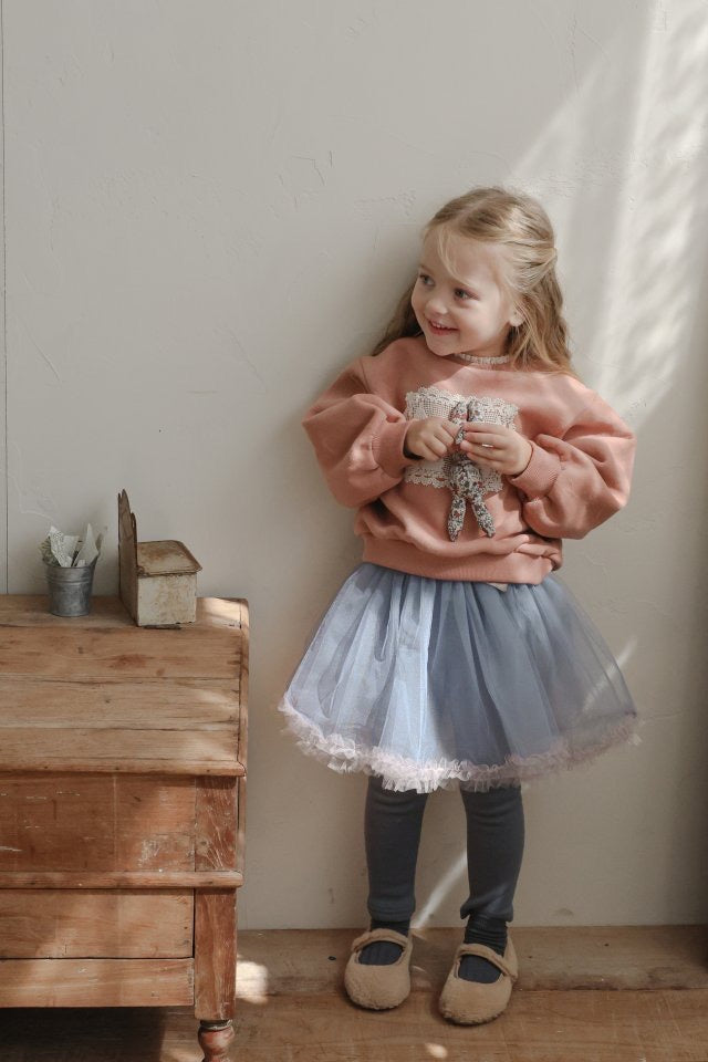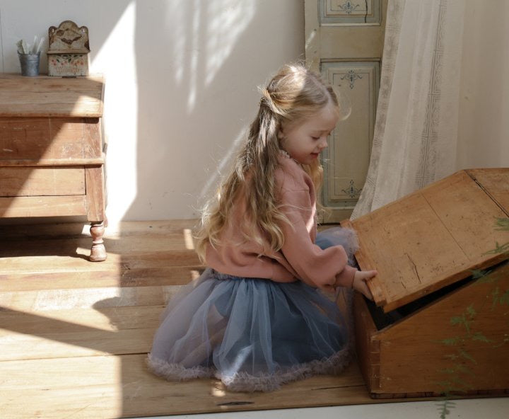 시보리로 볼륨감 있게 표현된 소매는 아이의 움직임에 경쾌한 리듬을 불어넣어, 일상 속에서도 세련된 분위기를 완성합니다.