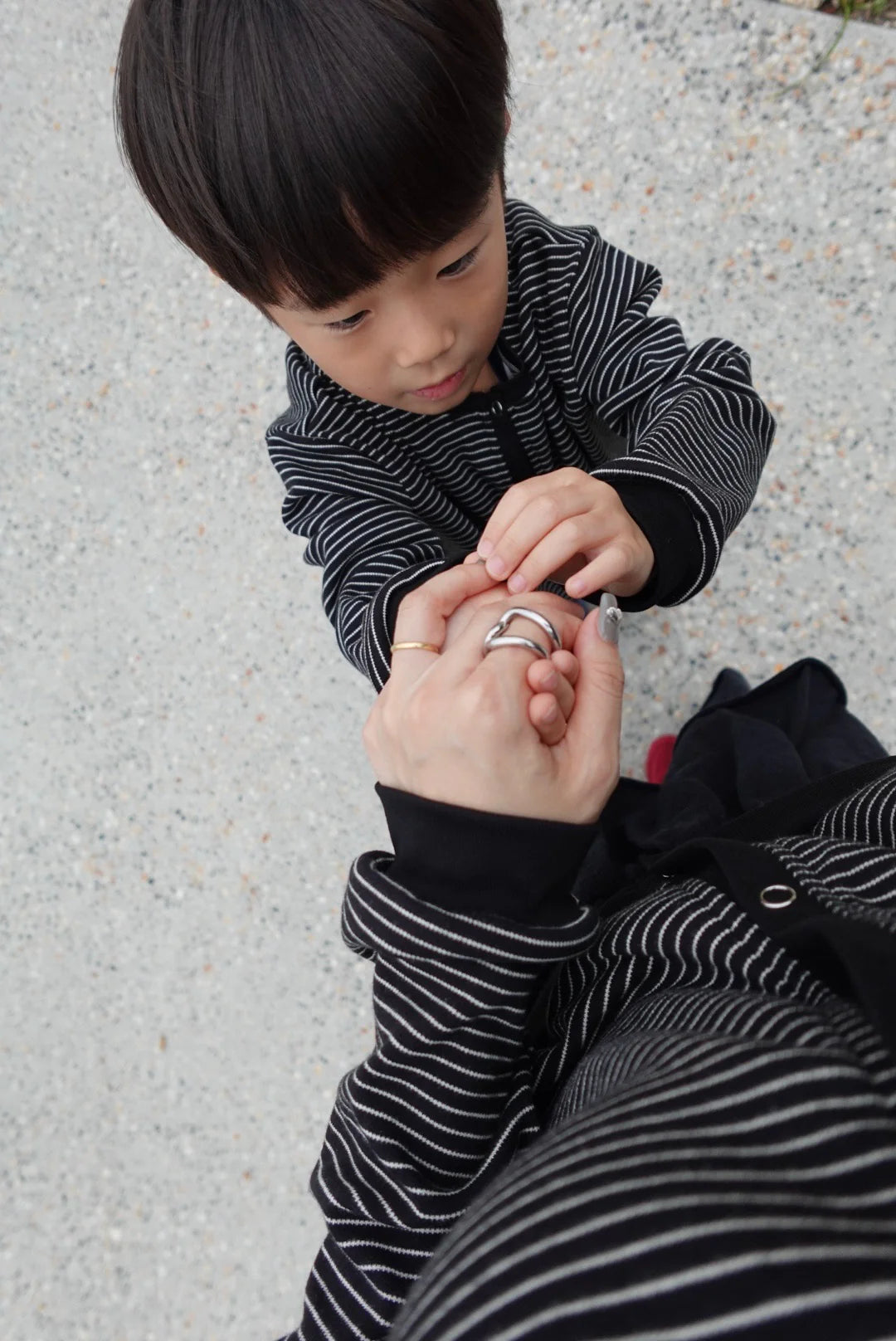 A simple striped cardigan that matches effortlessly with any outfit. Made from a soft, comfortable fabric, it’s perfect for transitional seasons—just throw it on to complete a stylish look for both adults and kids.