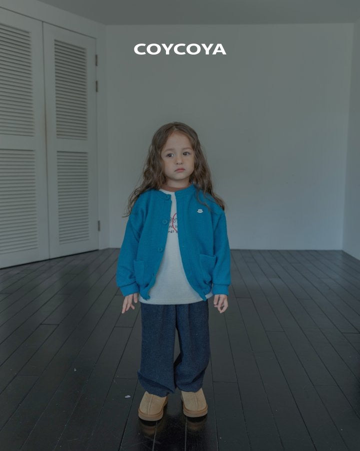 アリン着用:ハートポグンナグランティ、コイニットカーディガン、スナップムードパンツ