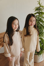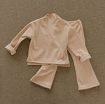 しっとりとしたベルベット素材が心地よいデイリーセットアップ。室内外問わず冬の万能アイテムです。