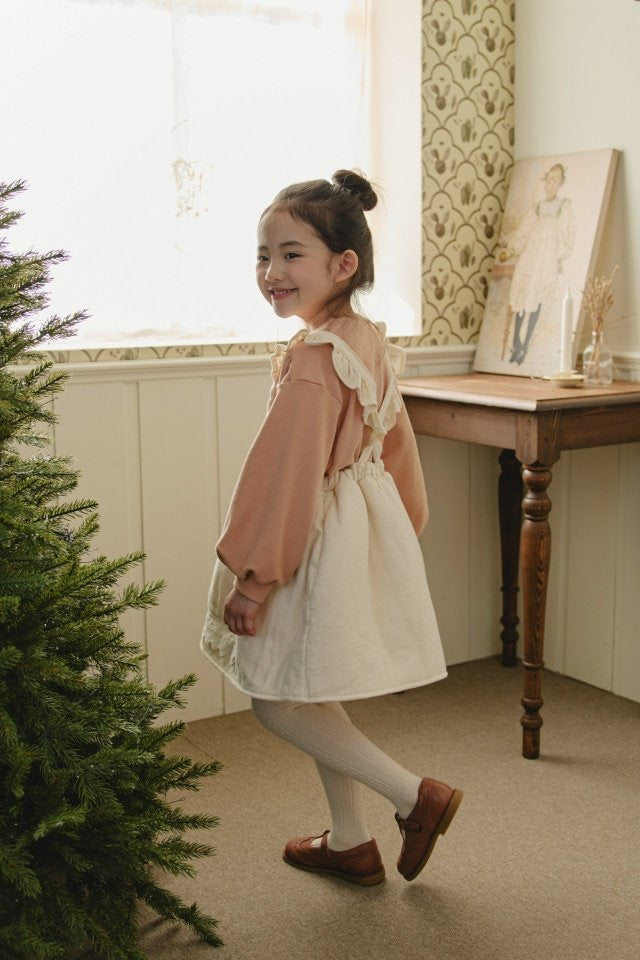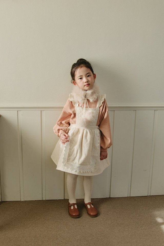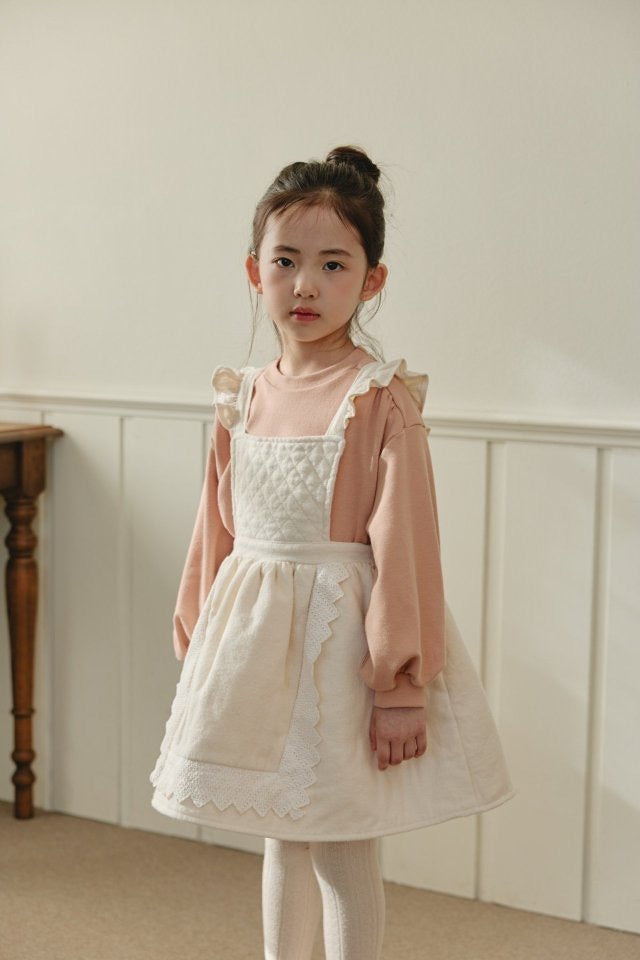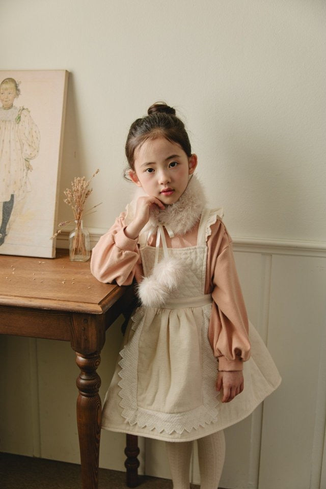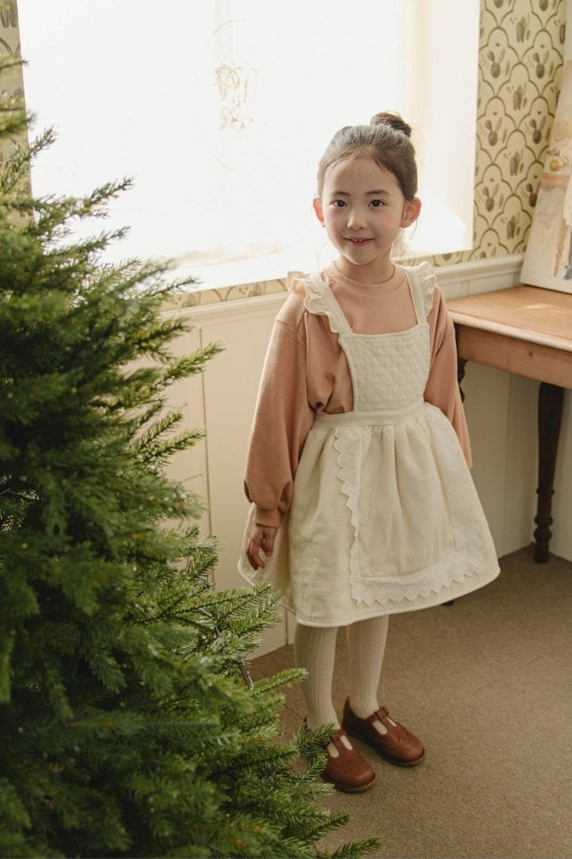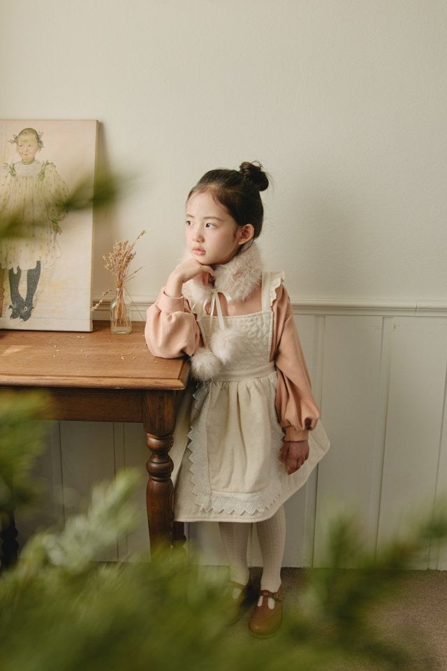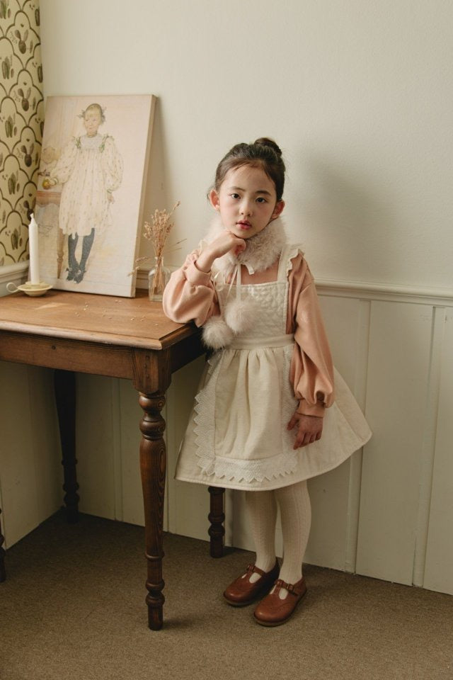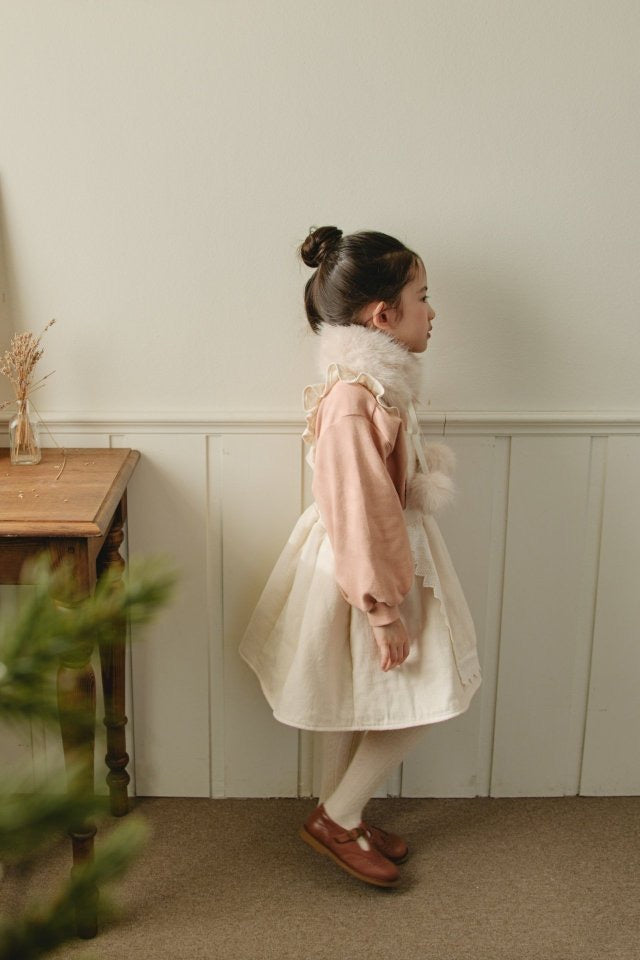 ダイヤキルトとレースディテールが可憐な印象の冬用ワンピース。記念日にも最適。