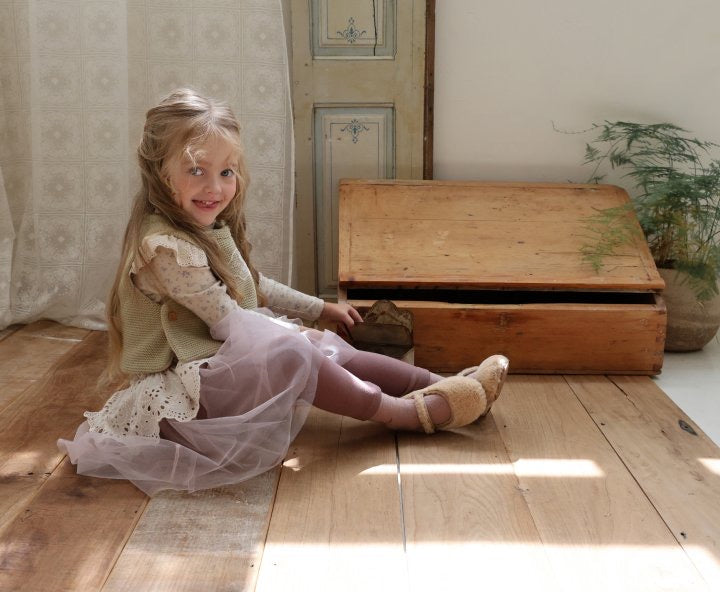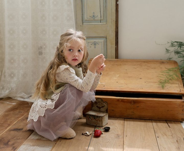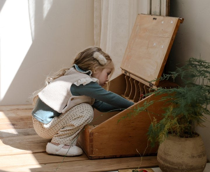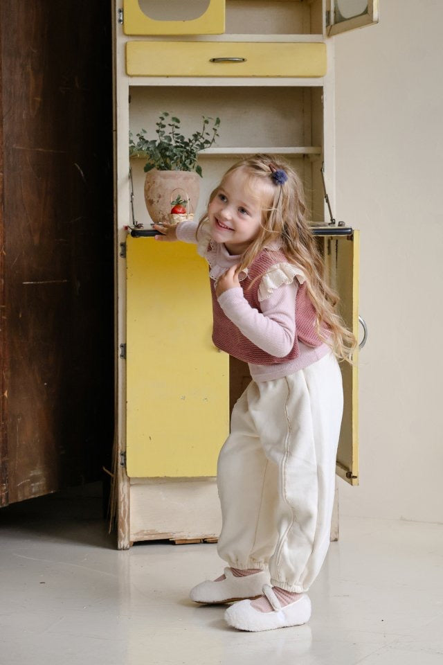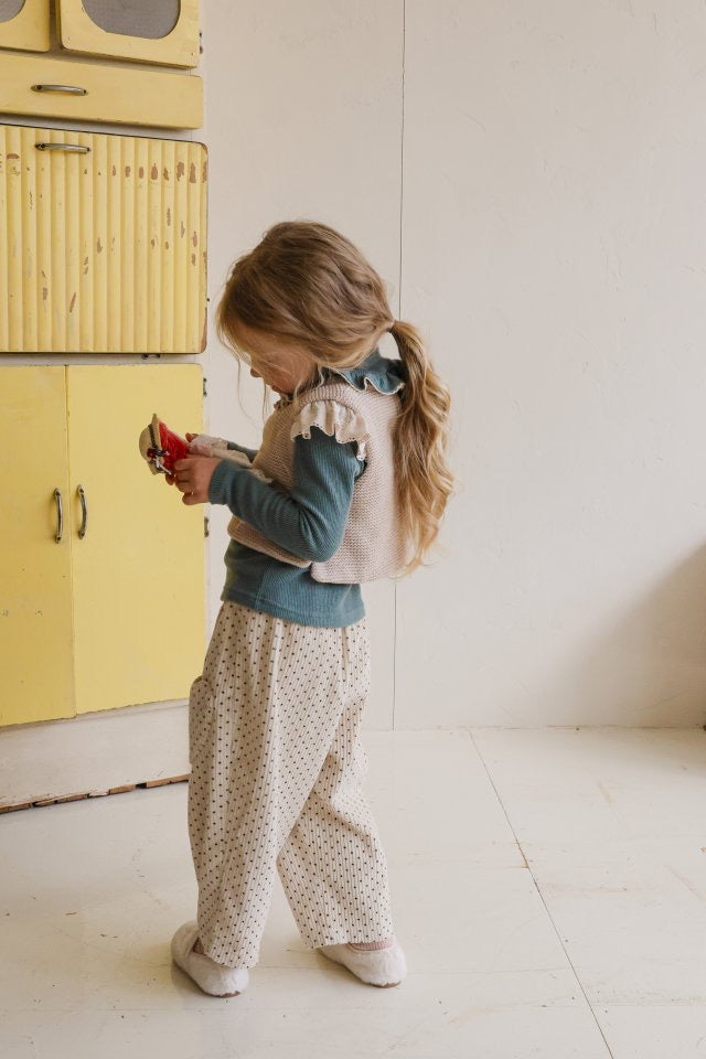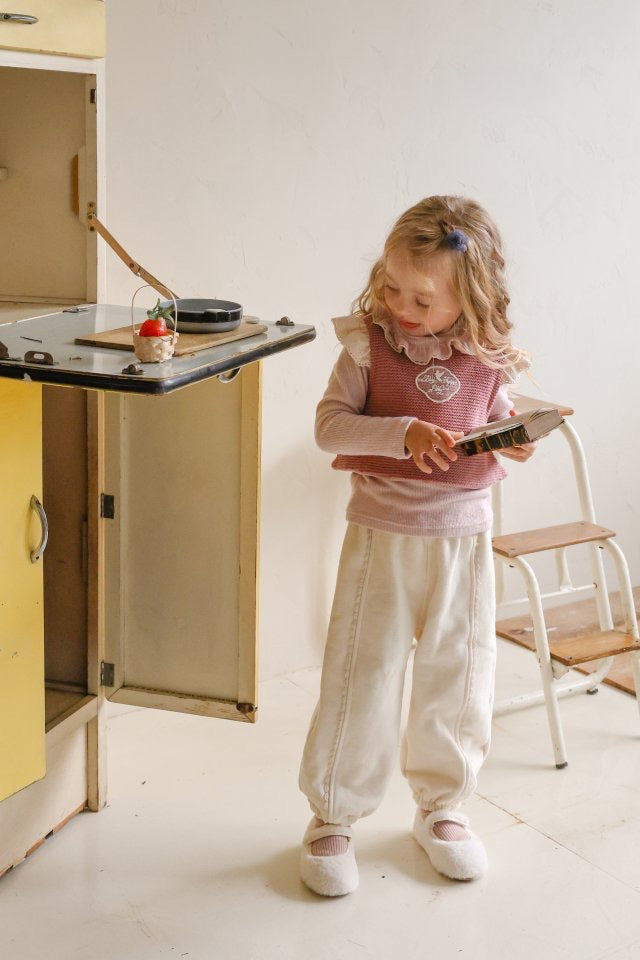 淡く優しいカラーとキュートなシルエットが魅力のベスト。