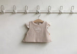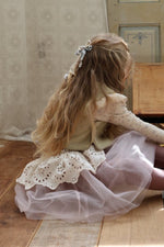 小さな羽のような肩のデザインがガーリーさを引き立て、