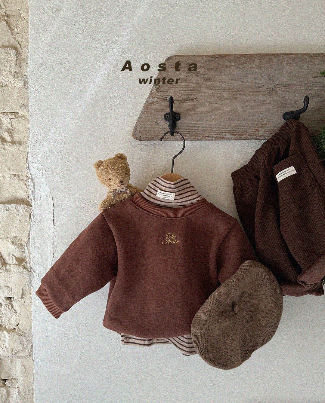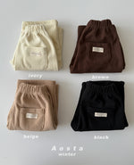 Aosta > 暖かみのあるカラーと柔らかい素材で、冬のデイリーパンツにぴったりの1本。快適な着心地と動きやすさで、活発なお子様にも◎ ベーシックなカラーでどんなトップスにも合わせやすい。ミンク裏地でふんわりあたたかく。