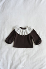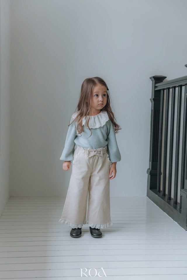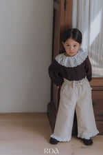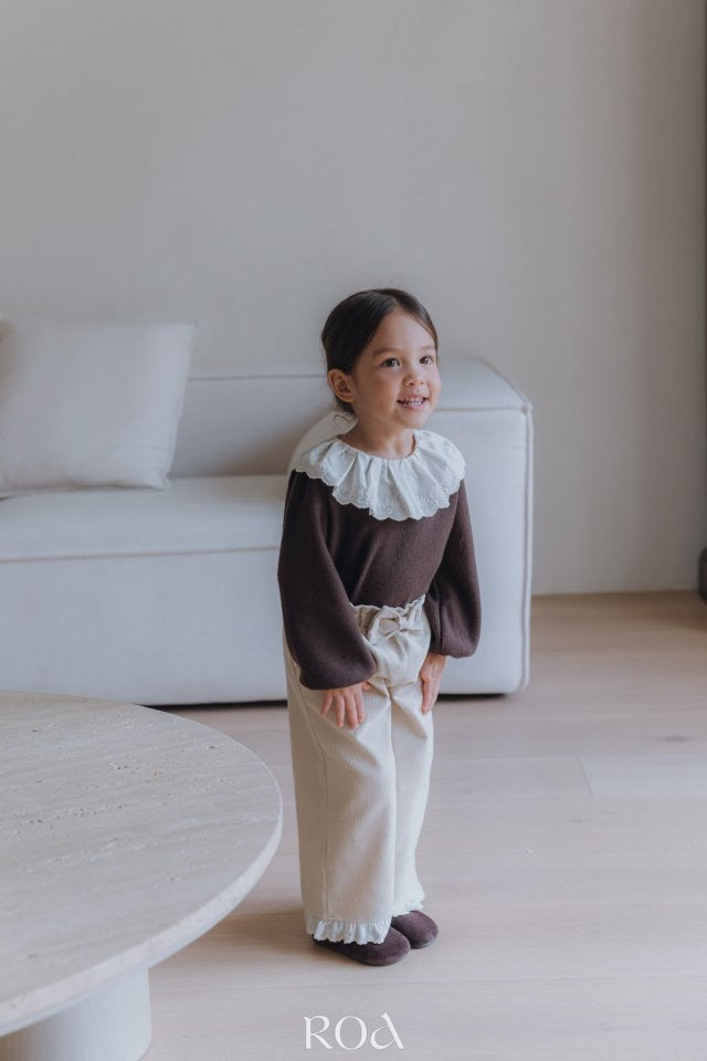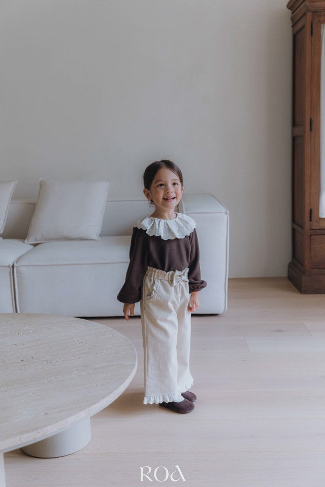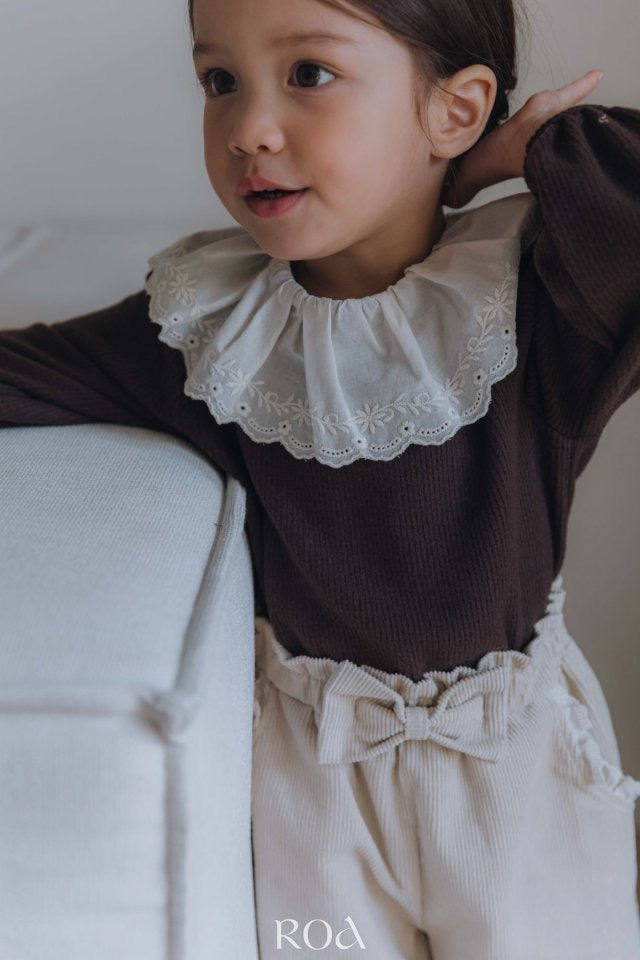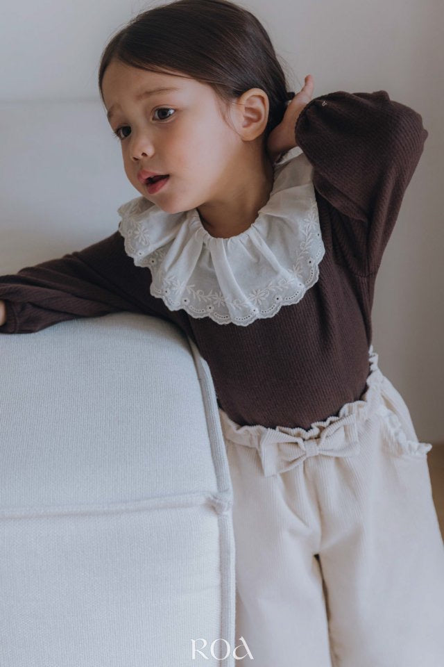 レース装飾が印象的なプリーツ入りTシャツ。肌あたりの良いストレッチ素材。