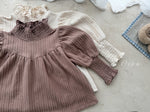 立体感のあるジャガード素材に起毛加工を施した、冬向けのスモークティーシャツ。ネックと袖のスモックディテールがフリルのように広がり、可憐なシルエットを演出します。単体でもインナーとしても活躍し、柔らかく快適な着心地です。