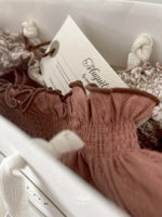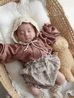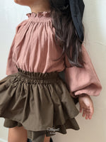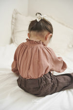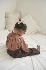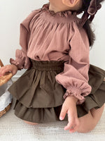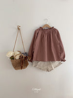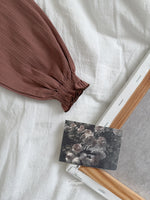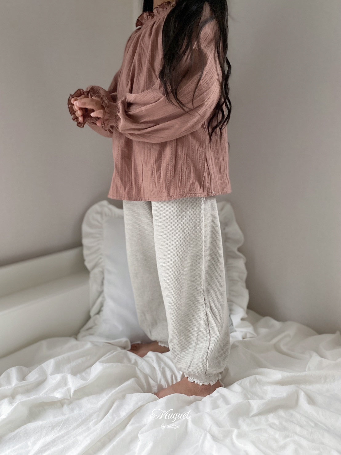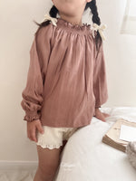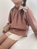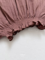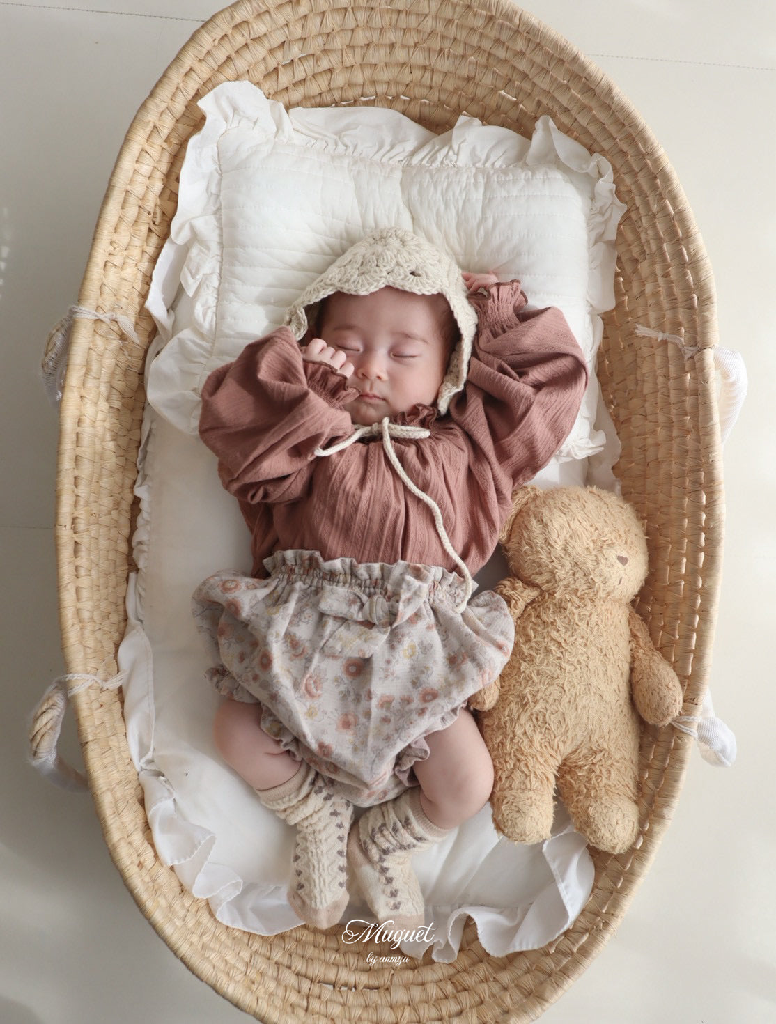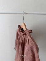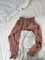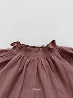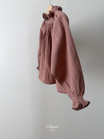 ふんわり軽いコットン素材に繊細なギャザーをたっぷり寄せ、柔らかく肌あたりの良い着心地を実現しました。