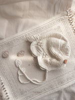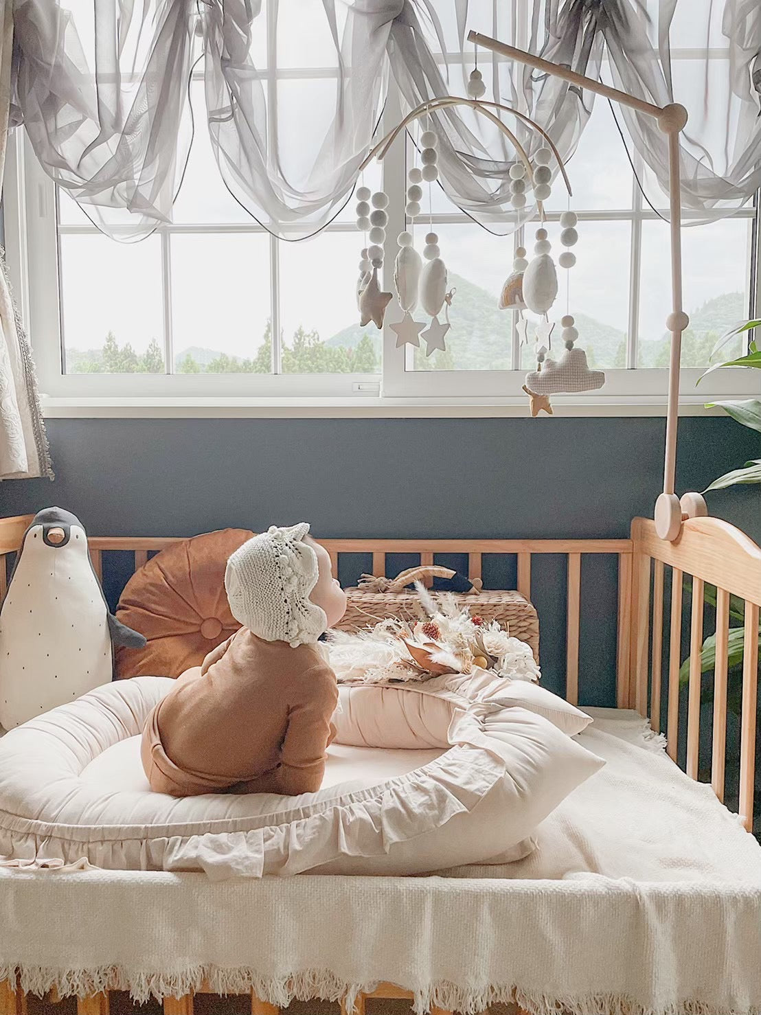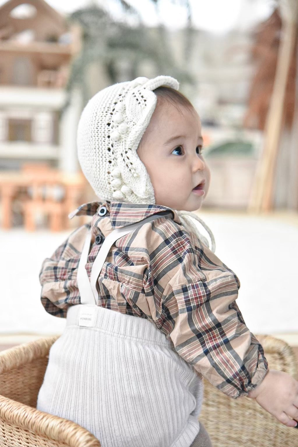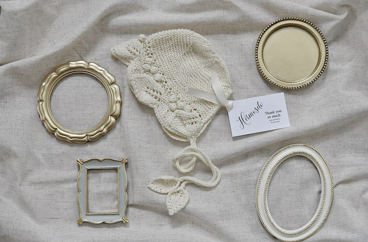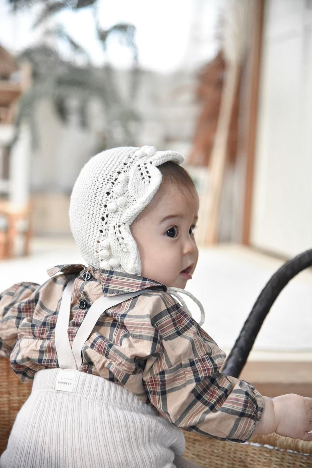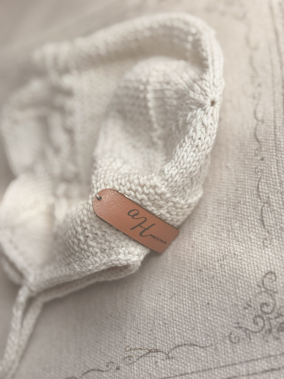 葉っぱモチーフのストラップが目を引く「Leaf Bonnet by Hermosito」。ナチュラルで愛らしいデザインは赤ちゃんの可愛らしさを引き立て、記念日フォトやおでかけにぴったり。anmyuとHermositoの特別なコラボ商品で、在庫わずかの数量限定アイテム。さらに出産祝いなどのギフトにも選ばれる人気のボンネットです。