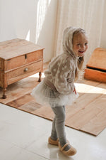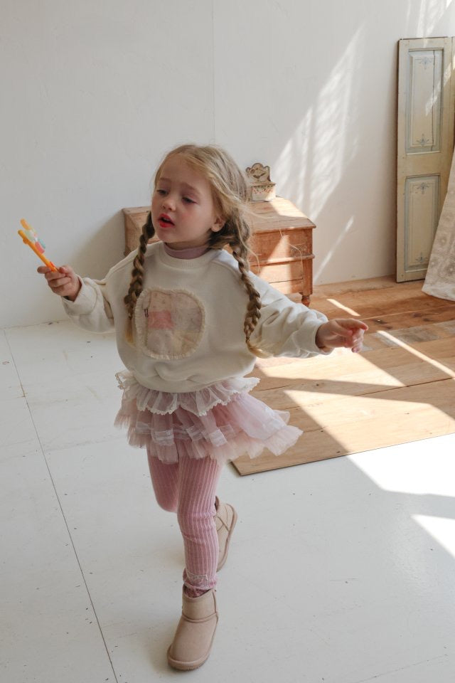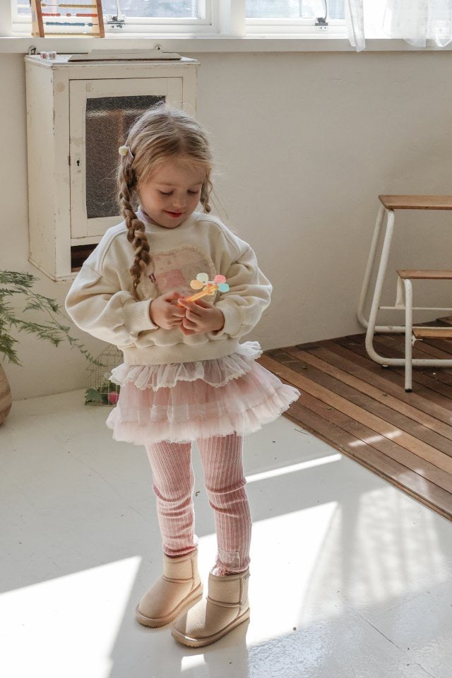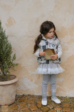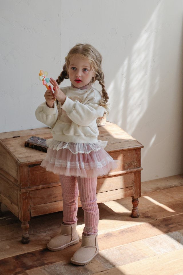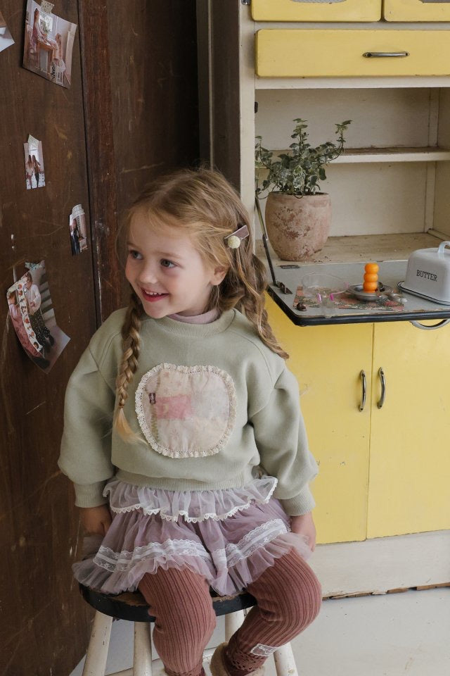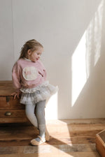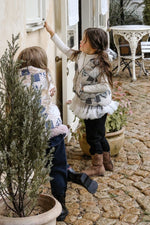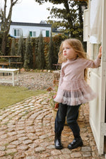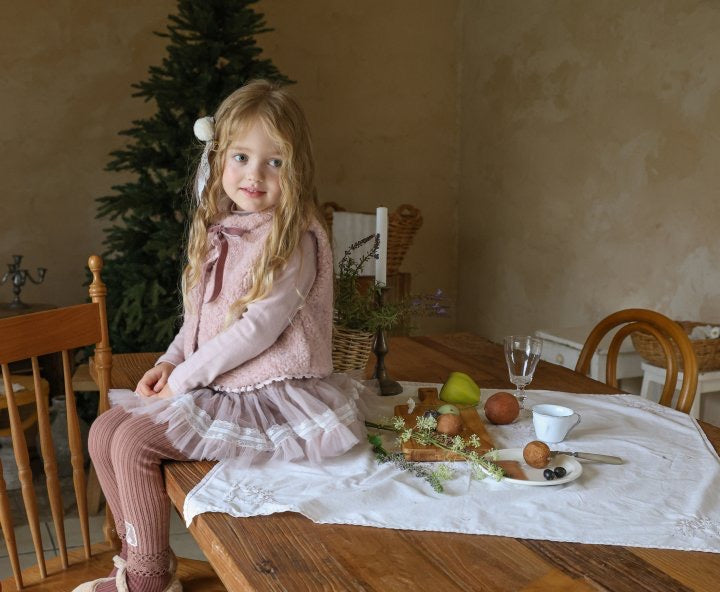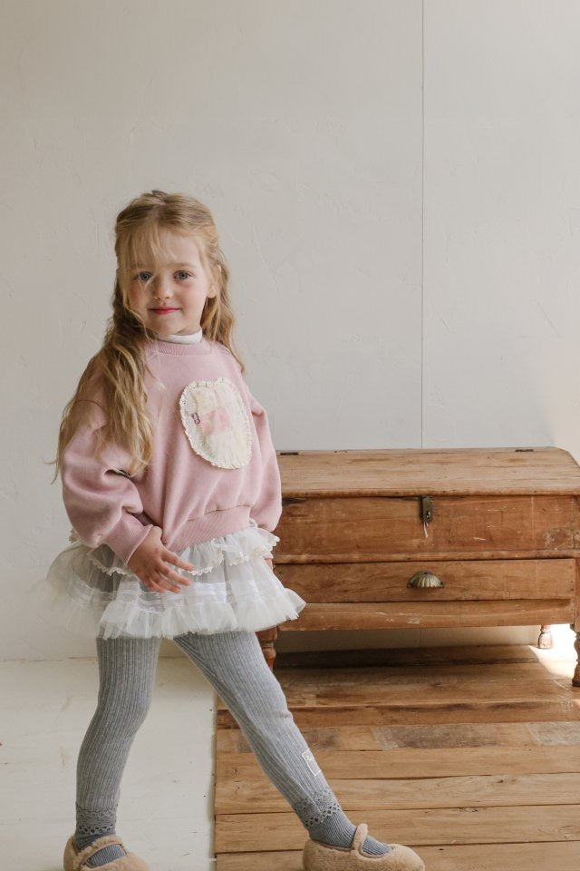 下身頃はふわっと広がるチュールスカートでエレガントなシルエットを演出します。